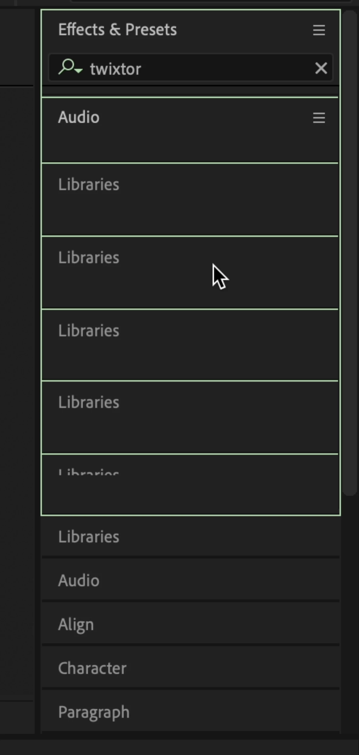 On Effects and presets are not showing and it’s highlighted the “libraries”