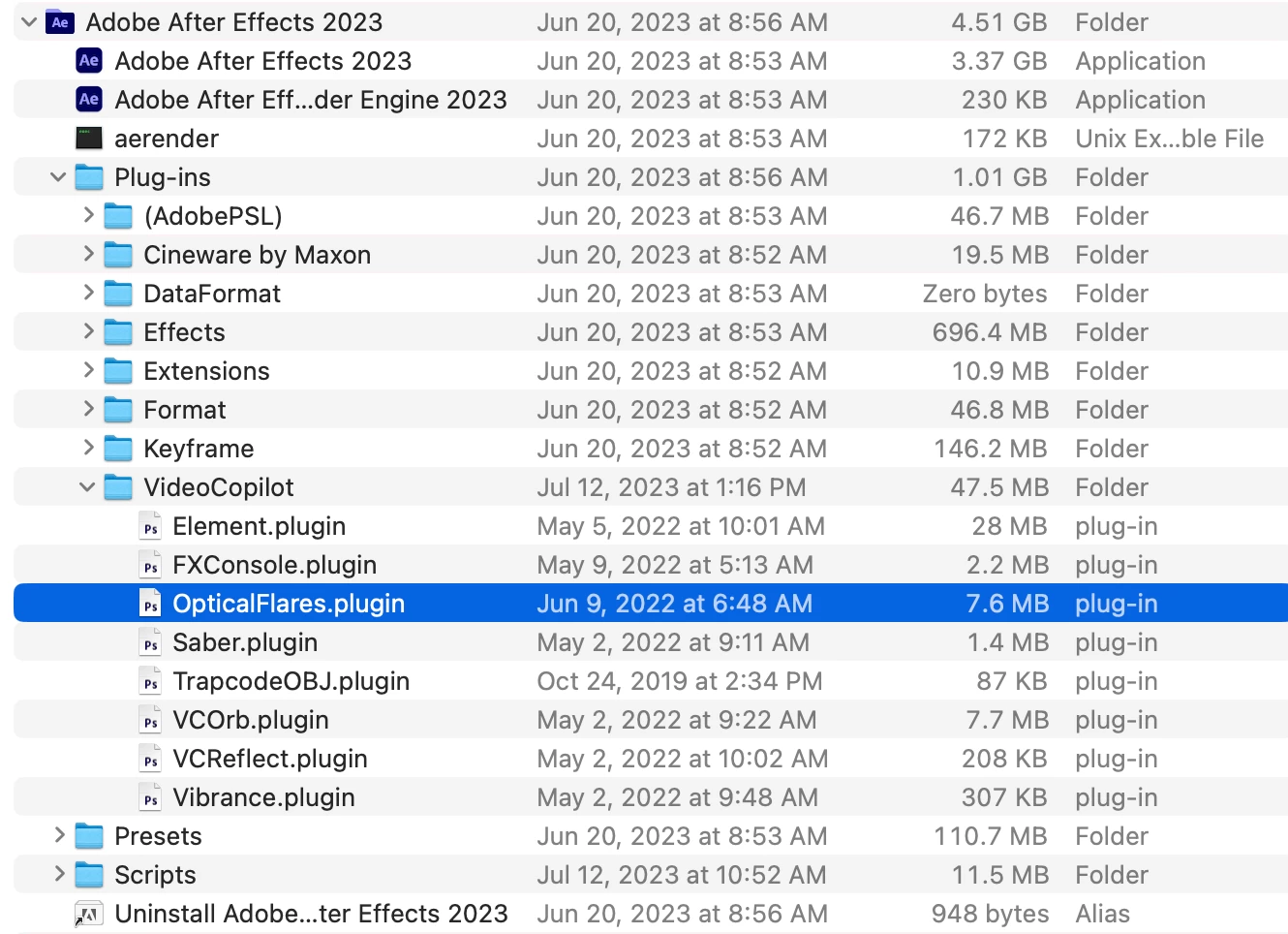 Since the update to AfterEffects v23.4.0 every time I try to use Videocopilot's Optical Flares or every time I open a existing project, that uses Optical Flares, After Effects crashes. When re-starting AE it recommends to disable Optical Flares.