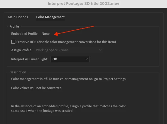 I'm on version 22 of AE and whenever I import media, AE displays the content darker and the quality is subpar compared to the original. I've tried to go to File > Projects Settings > Color tab > Working Space option and set it to "none" and problem is still happening. Thoughts?