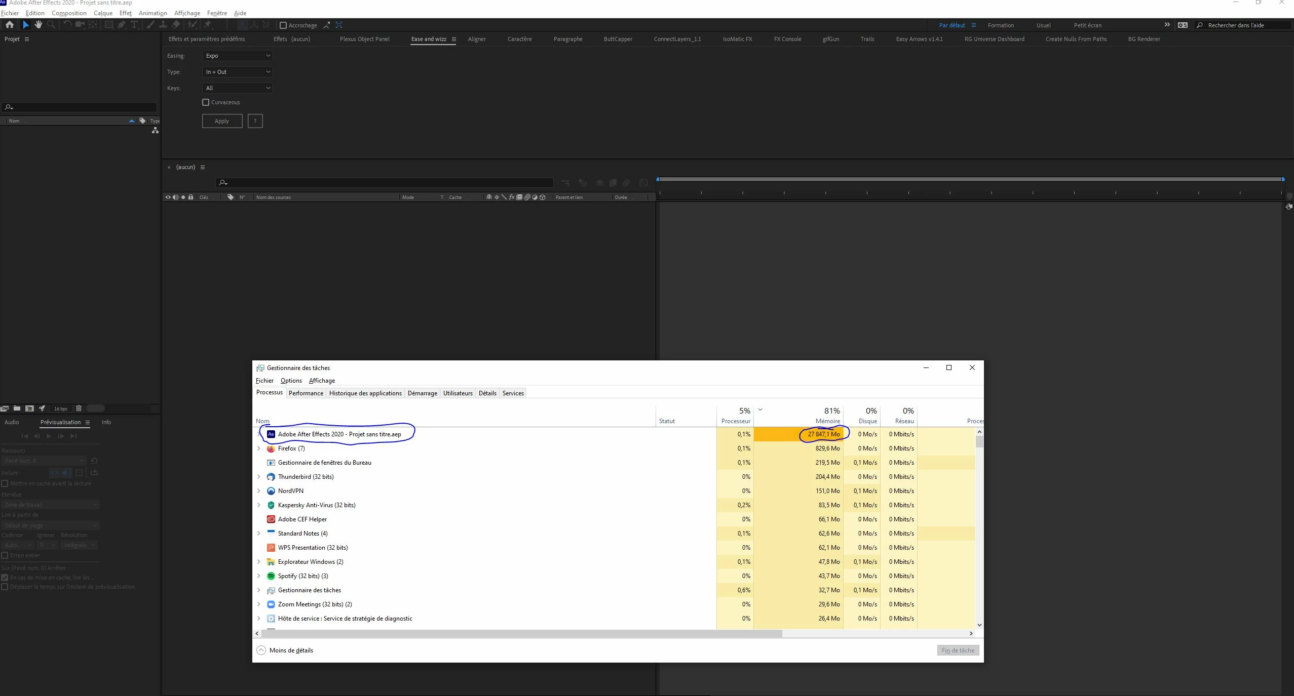 On the project i'm working on, i get "out of memory" messages. The project is ultra light (few layers, 1920X1080, nothing special...)