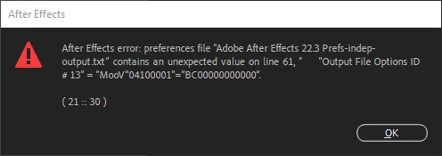 I'm having this very annoying issue, every once in a while when I open After Effects I get this error.