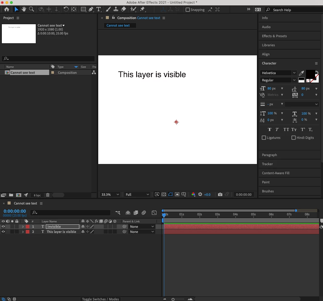 Paragraph Text nothing appears in composition window