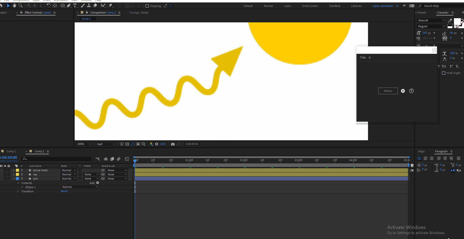 I want to animate a sun ray with an arrowhead. Everything is good. But I can not attach the arrow head with the ray body. I parented the head but it stands still. It should move too. Why does not it move?
