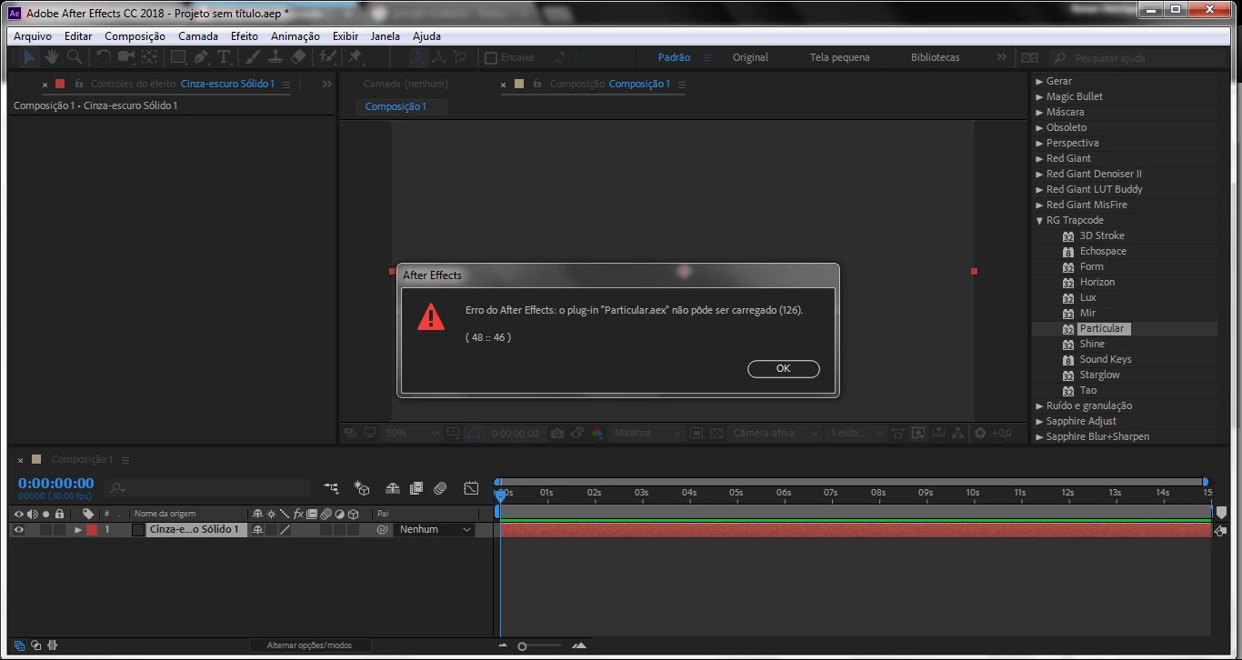 Hi! I'm already trying to solve this problem but I can not. The error is that my after effects cc 2018.0 is giving error when I try to put the plugin "Trapcode Particular" on some project any. The specifications of my system are these: