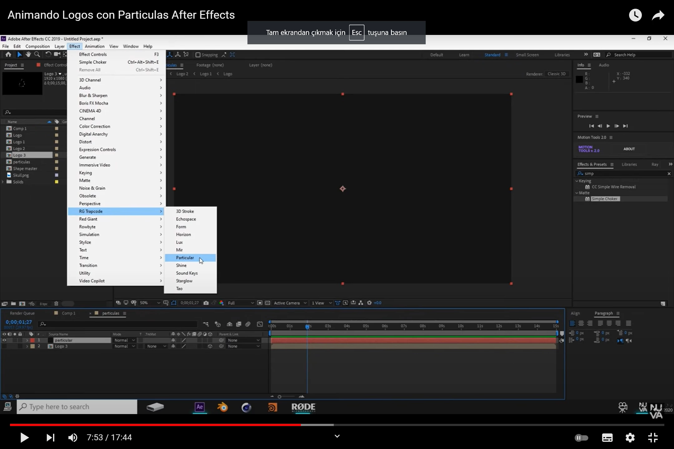 Hello, I'm animating my logo. I found an effect on You Tube. but the video on you tube is old. I am using After effects 2022. I'm looking for something called 'particular effects' in the Effects section, but I couldn't find it.
