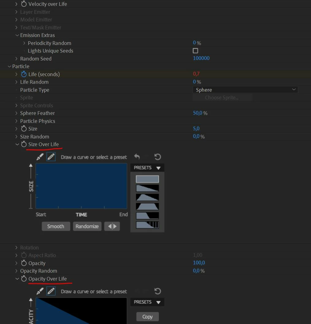 for my effect trapcode particular, i would like changed the "Size Over Life" for the second preset.
