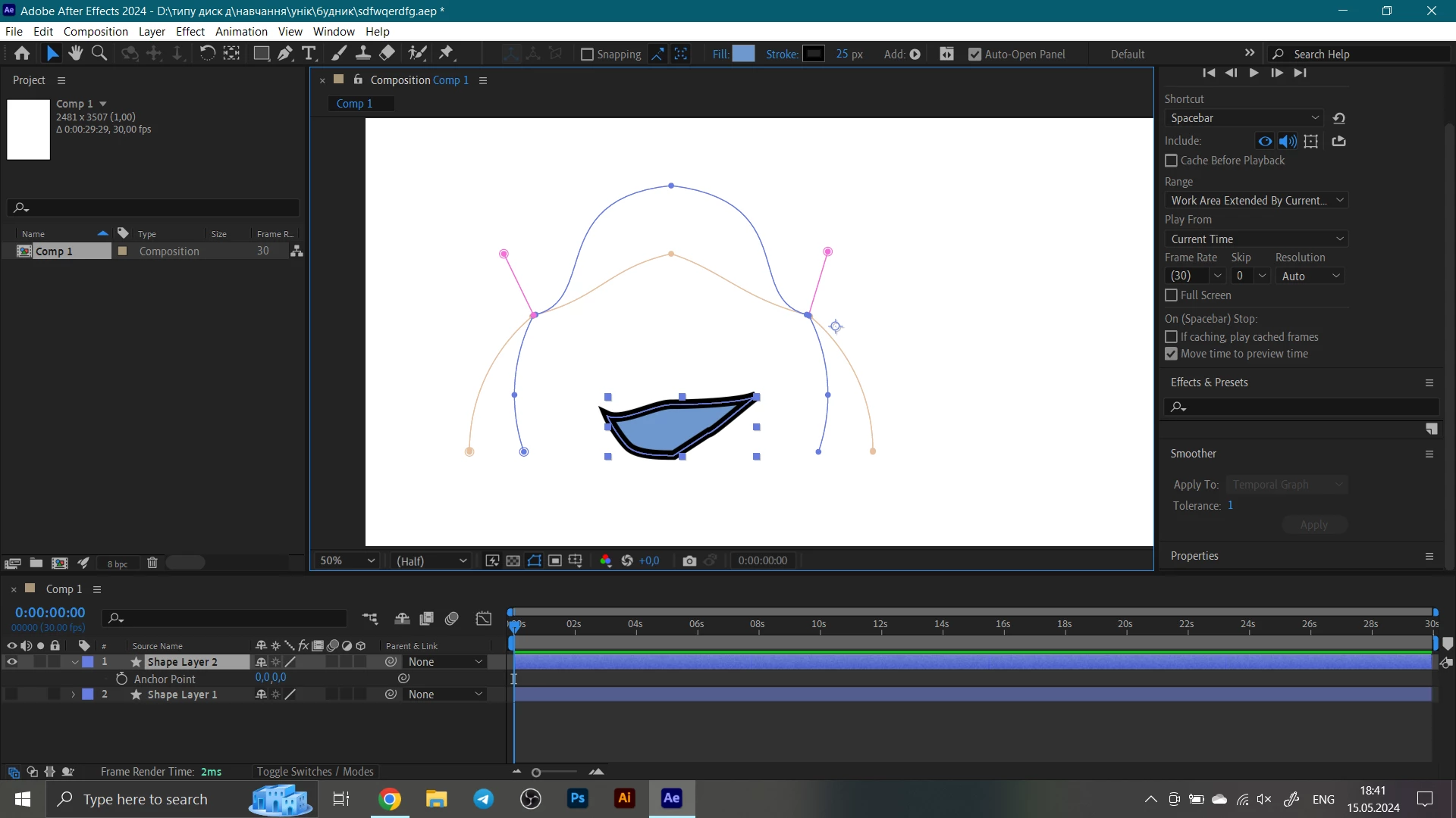 I copy-pasted a path from Illustrator in After Effects's empty composition. After I deleted a text (it was also a path), only the one closed path started having properties I would be giving it. Those others aren't displaying at all. How do I change it?