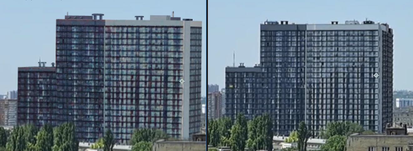 Hello, I hope I can clearly explain the problem I encountered. I have a video where there is a multi-story building in the center, a little to the side. Accordingly, the side of the house is at an angle (as in the photo). And I have a 3D model of this house. The point is that I want to replace the house in the video with a 3D model (I use Element 3d). But as a result, the side of the 3D model house is at the same level as the front (as in the photo). I would be very grateful for your help on how to make the 3D model look more like original.