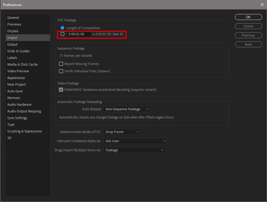 Hey so I was using 2012 version of After Effects which had all my settings set up automatically which my ex who is more tech savvy then me had set up because I only use After Effects (though I want to learn) for one thing and that's to take 1000's of photos & turn it into a basic film for running through Adobe Premiere to make stopmotion animation.