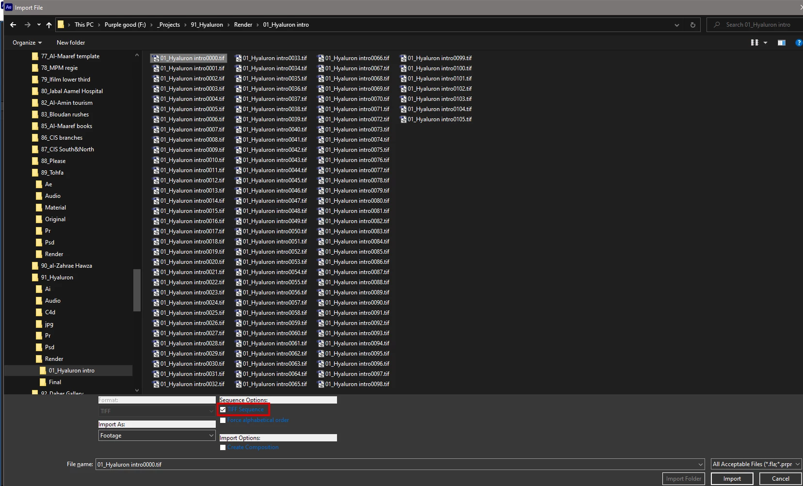 But as Rick said before this is not the best way to import sequences. I would import it as a sequence using the checkbox: