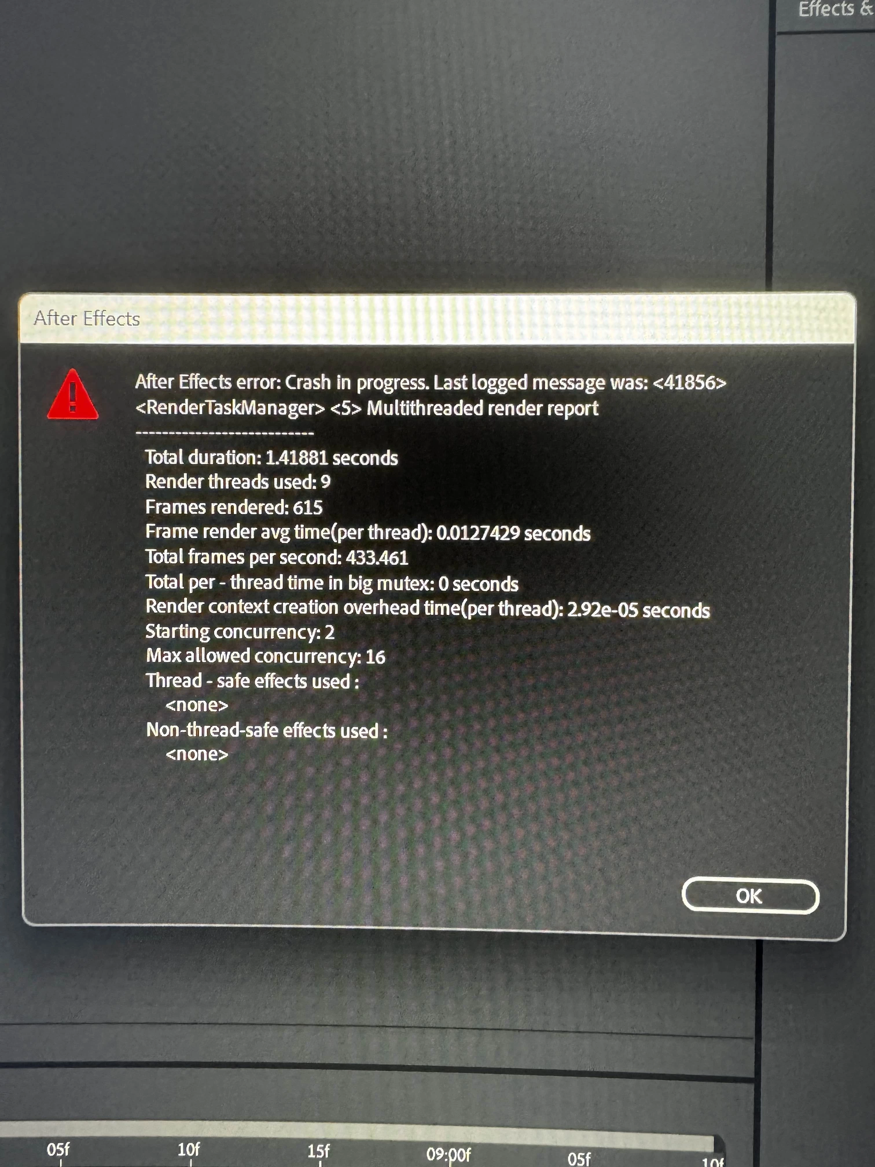 Yesterday I was using After Effects with no problems. I don’t know what happened between then and now because I can’t open project files (I only can when I launch AE through an .aep) or save/apply animation presets through the ‘Animation’ tab. Every time I try to do either my AE gets a pop-up with the crash error and then gives me the chance to save my project file before it quits.