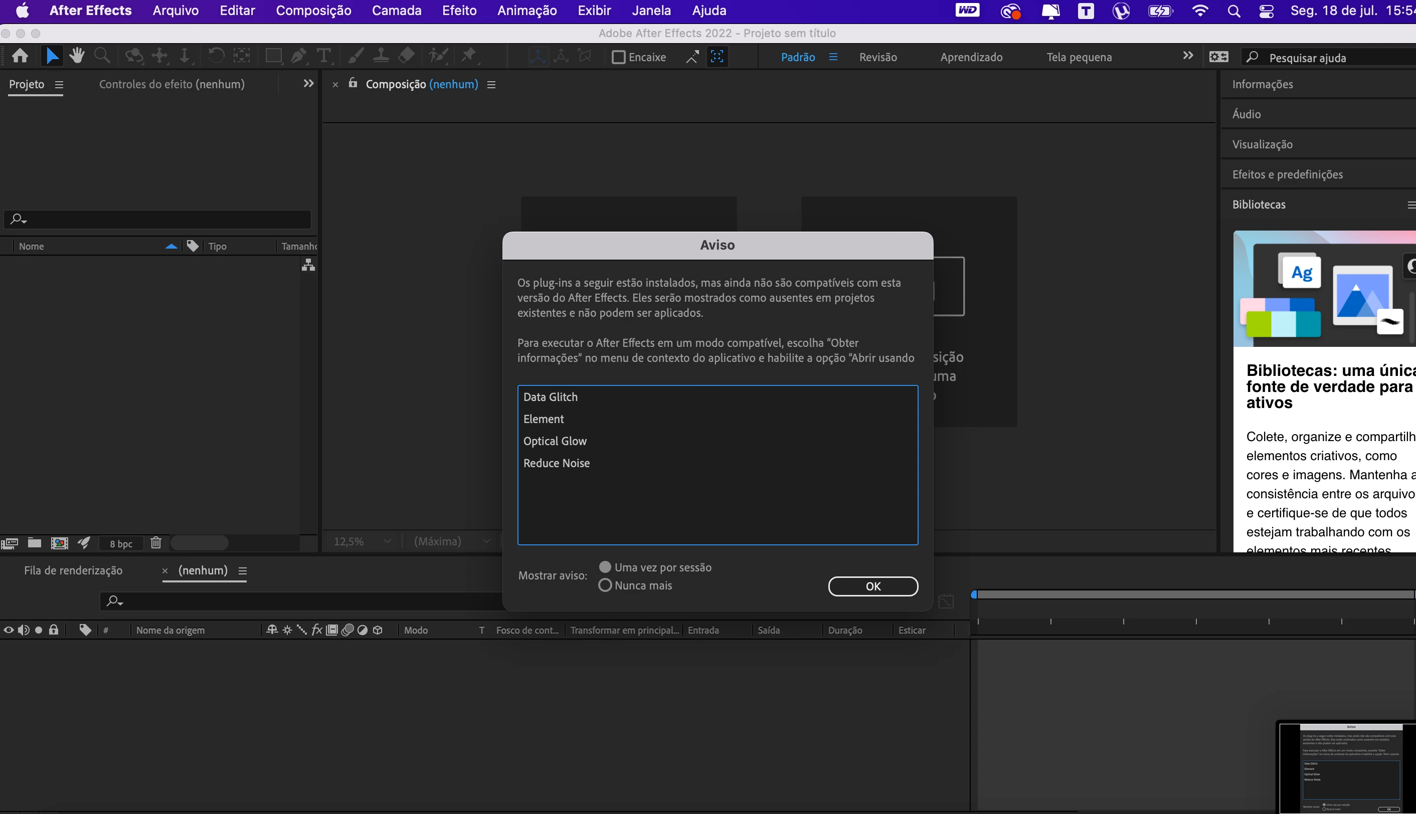 Ola, estou tendo que usar duas versões do Adobe After Effects 2022 e 2021 pois na versão 2022 os pluguins que sempre utilizei e que estou utilizando na versão 2021 não estão compativeis com a versão 2022