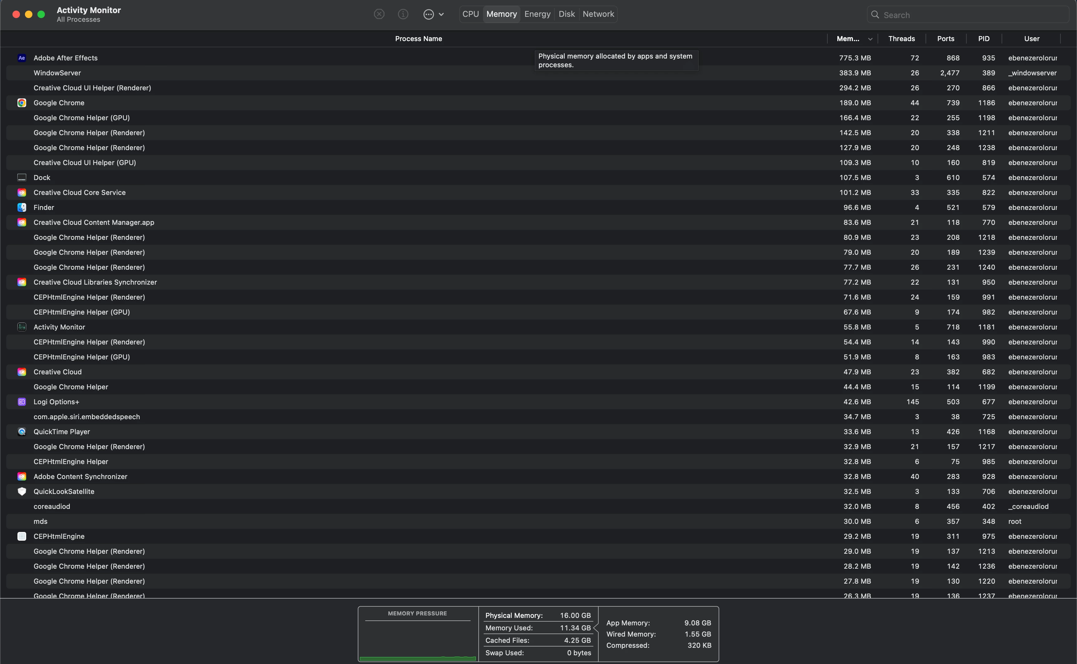 My activity monitor is green and showing very low activity yet After effects keeps giving me "low memory warning and I am unable to preview my files.