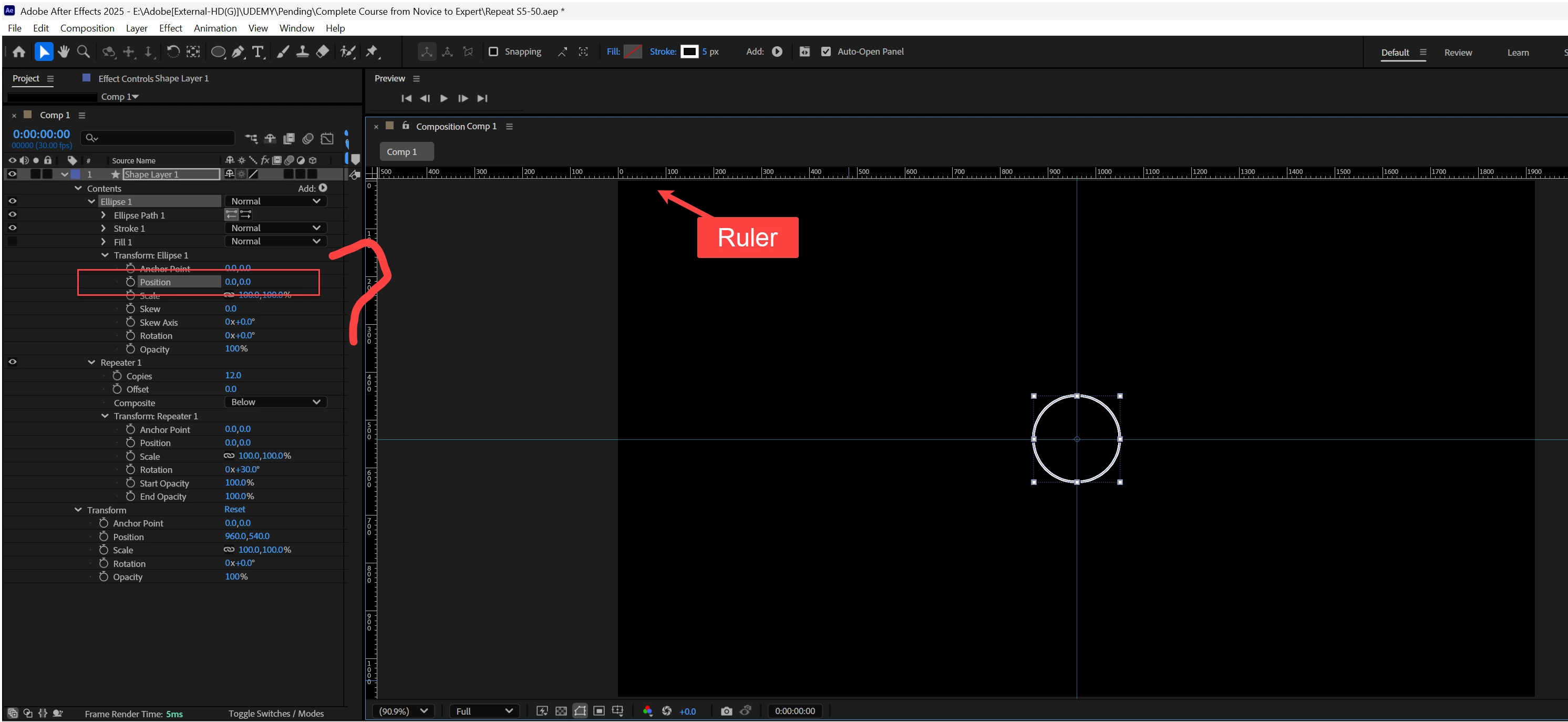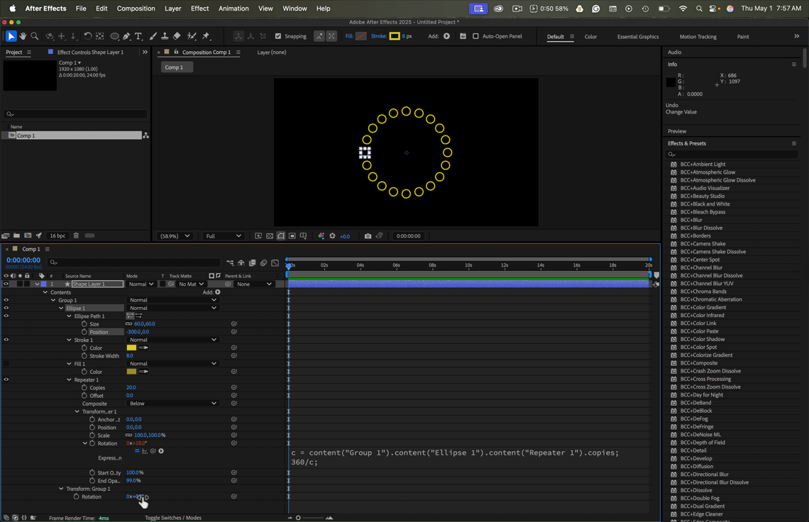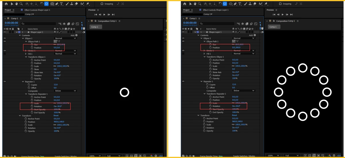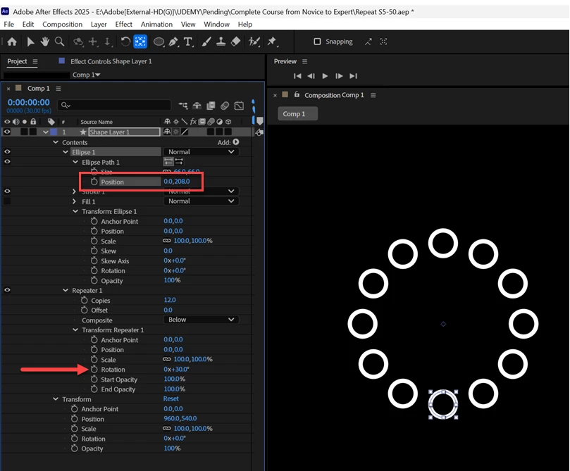 In this composition there are 12 rings one over other with a rotation of 30 degrees. With the positional change only it create a visible rotation. How can it be explained? Video and file also uploaded.