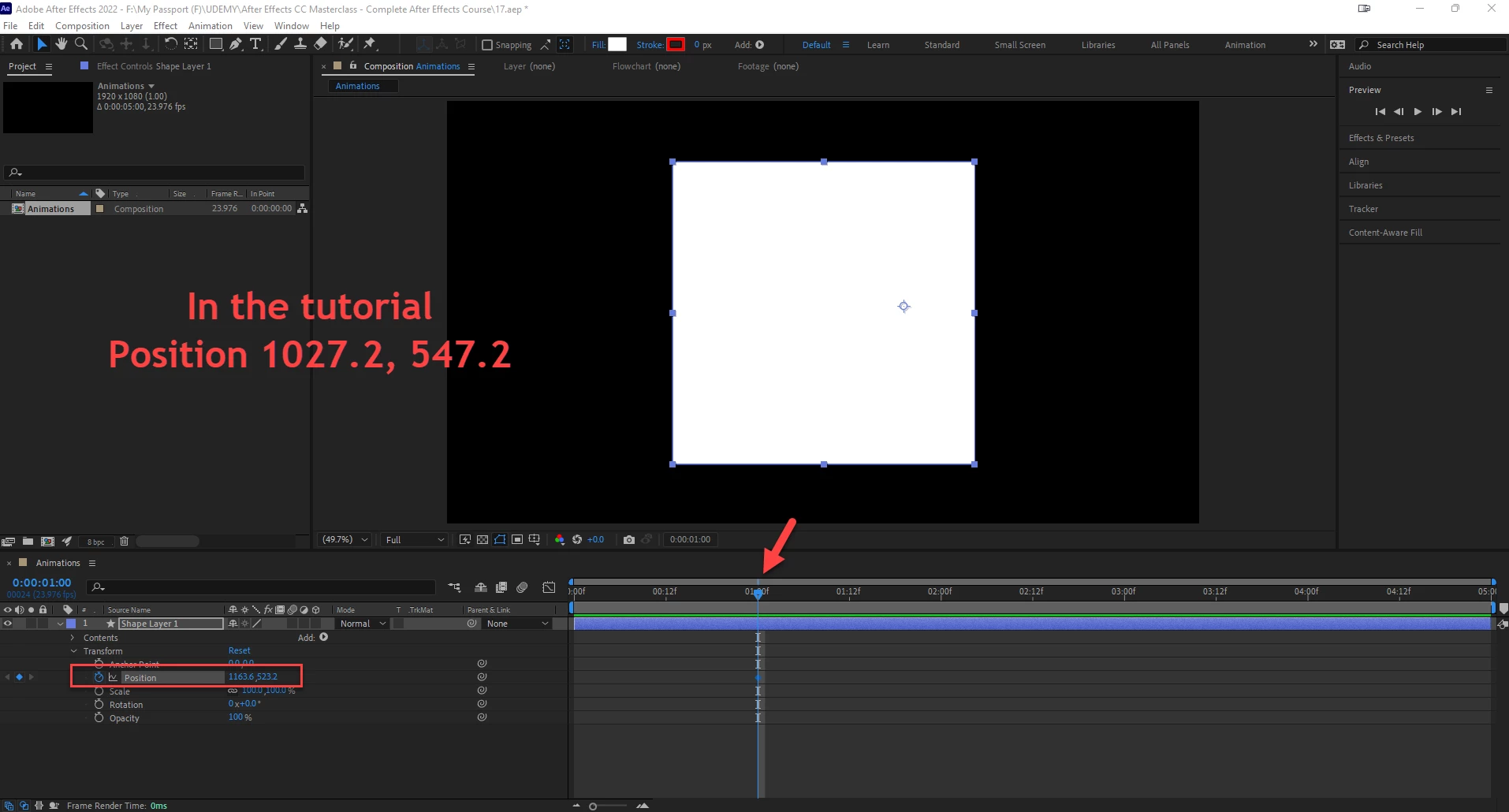 Best to expand them both, and set the shape's positions to the centre of your comp, then you can adjust the layer's position.