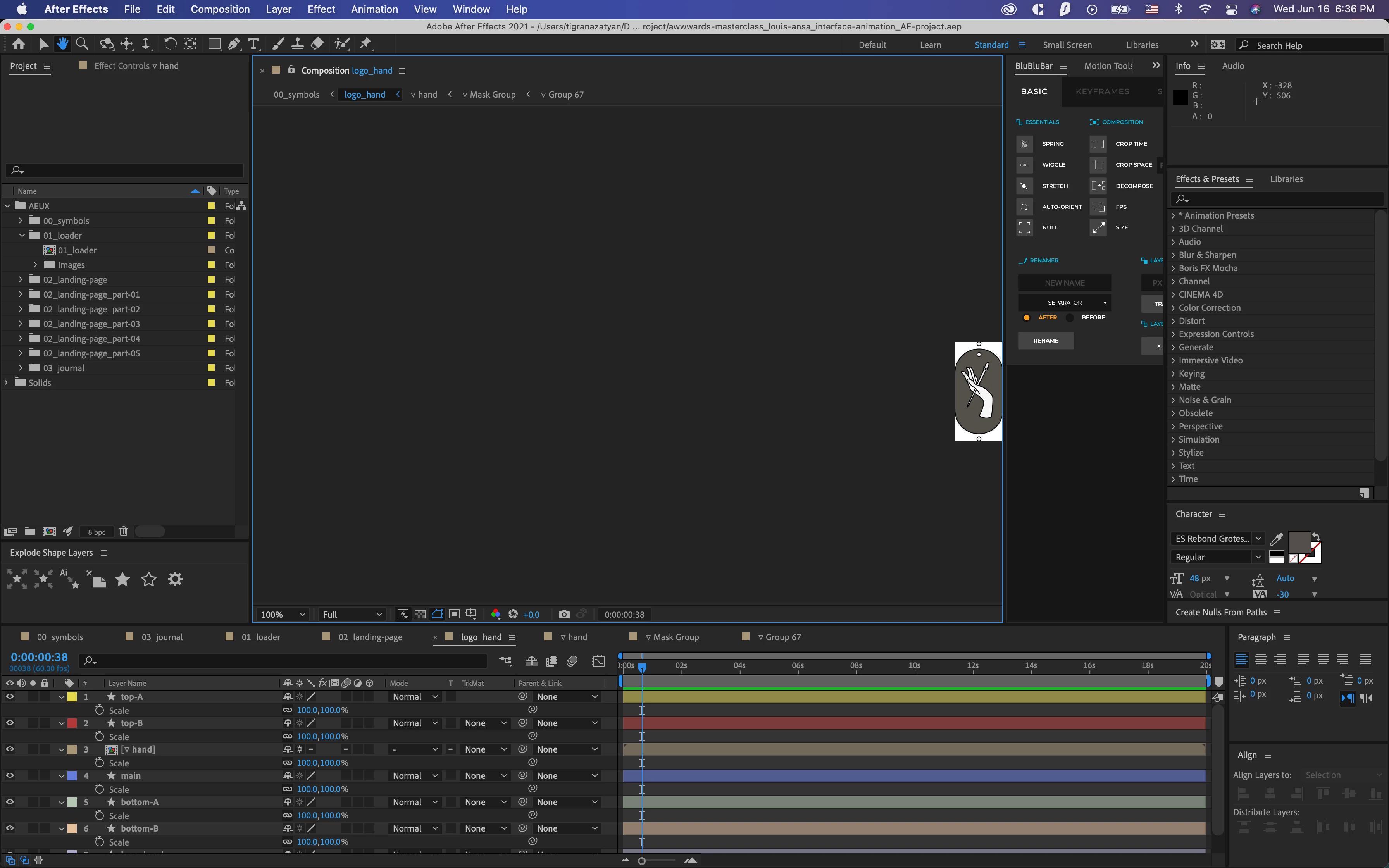 Pre-comp shows the background color, although the layers are visible