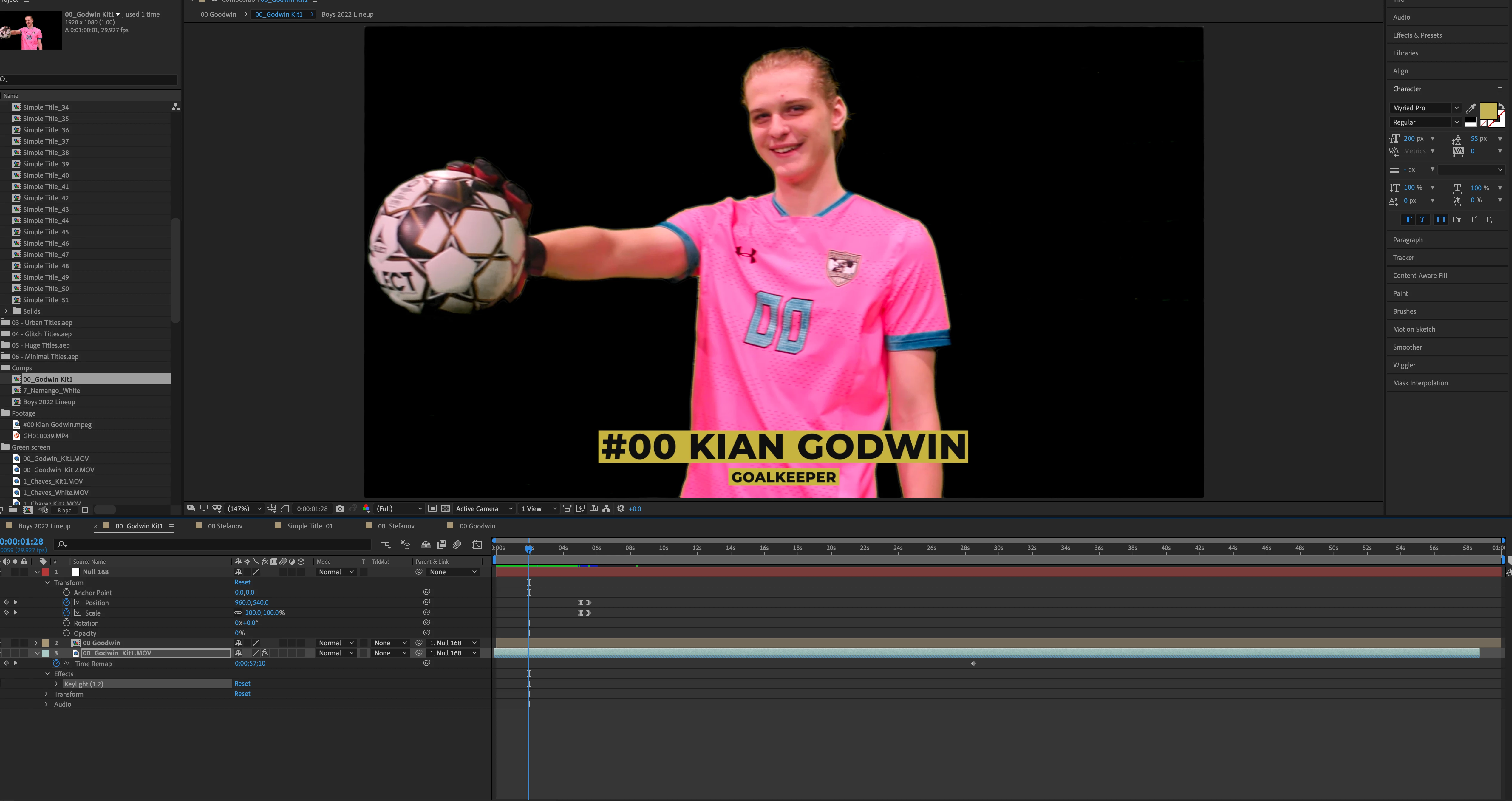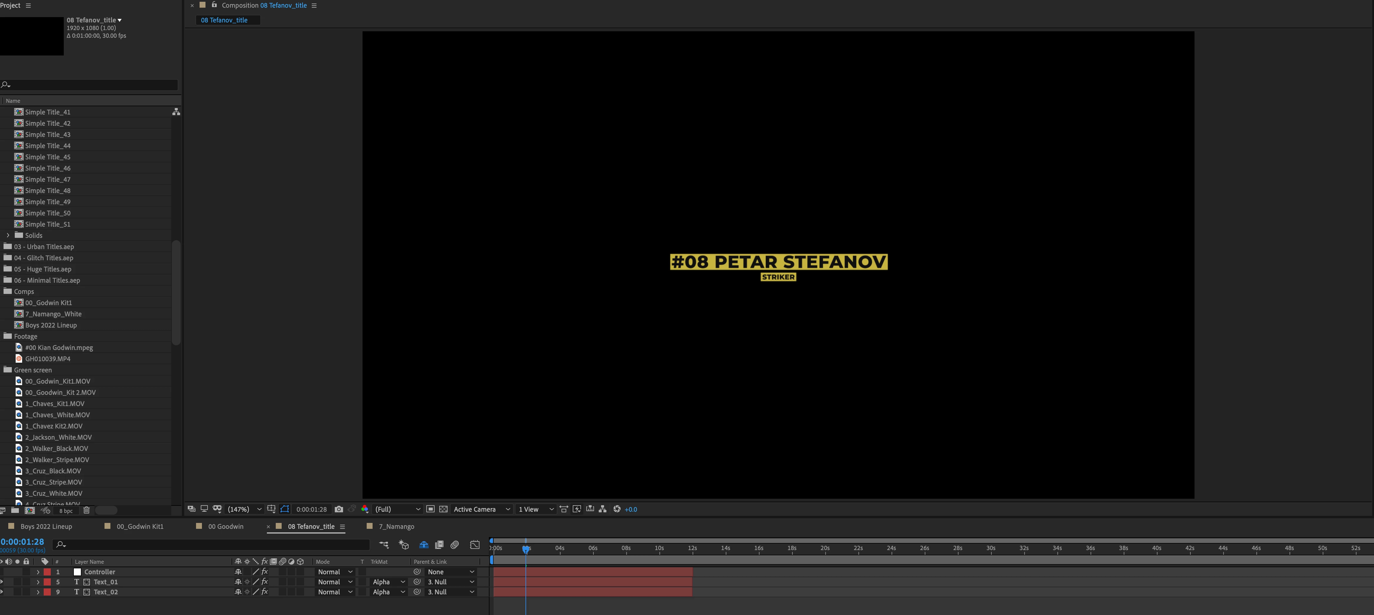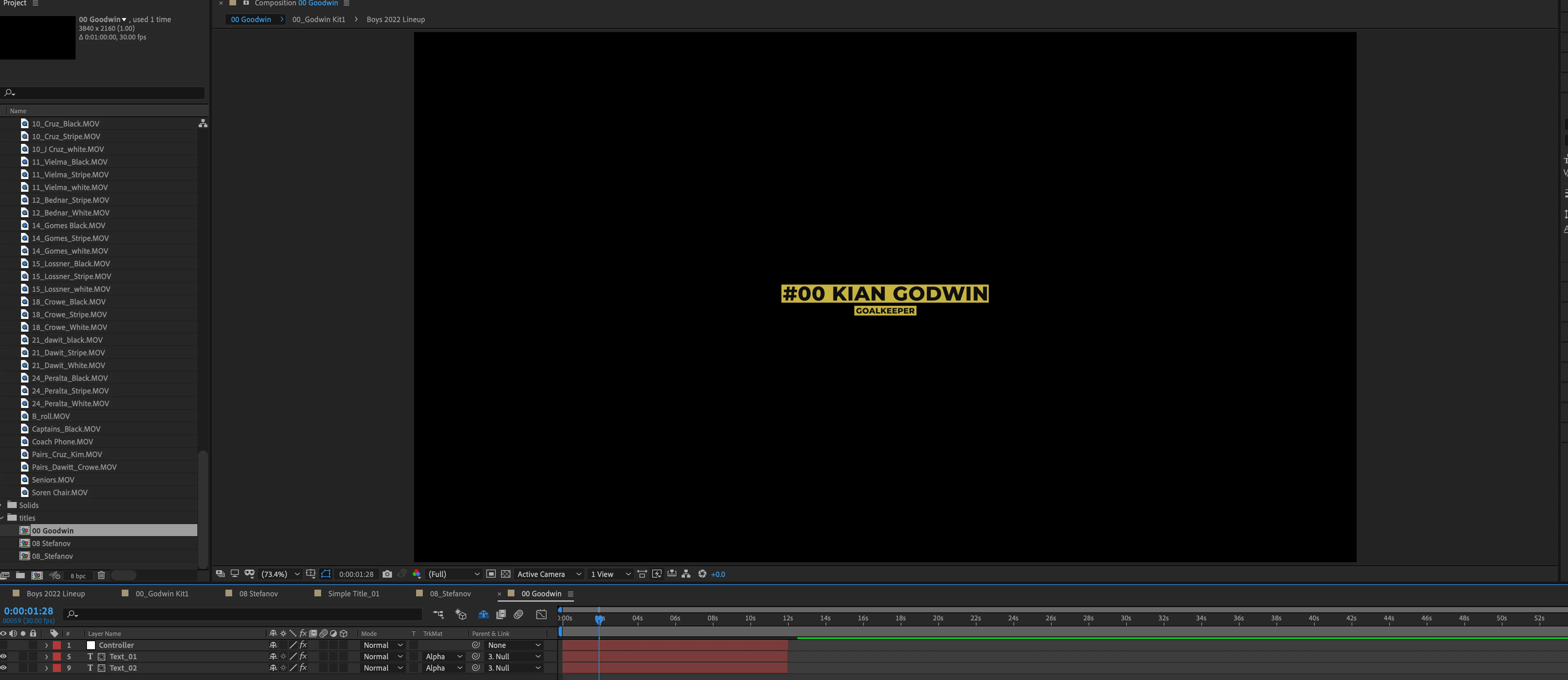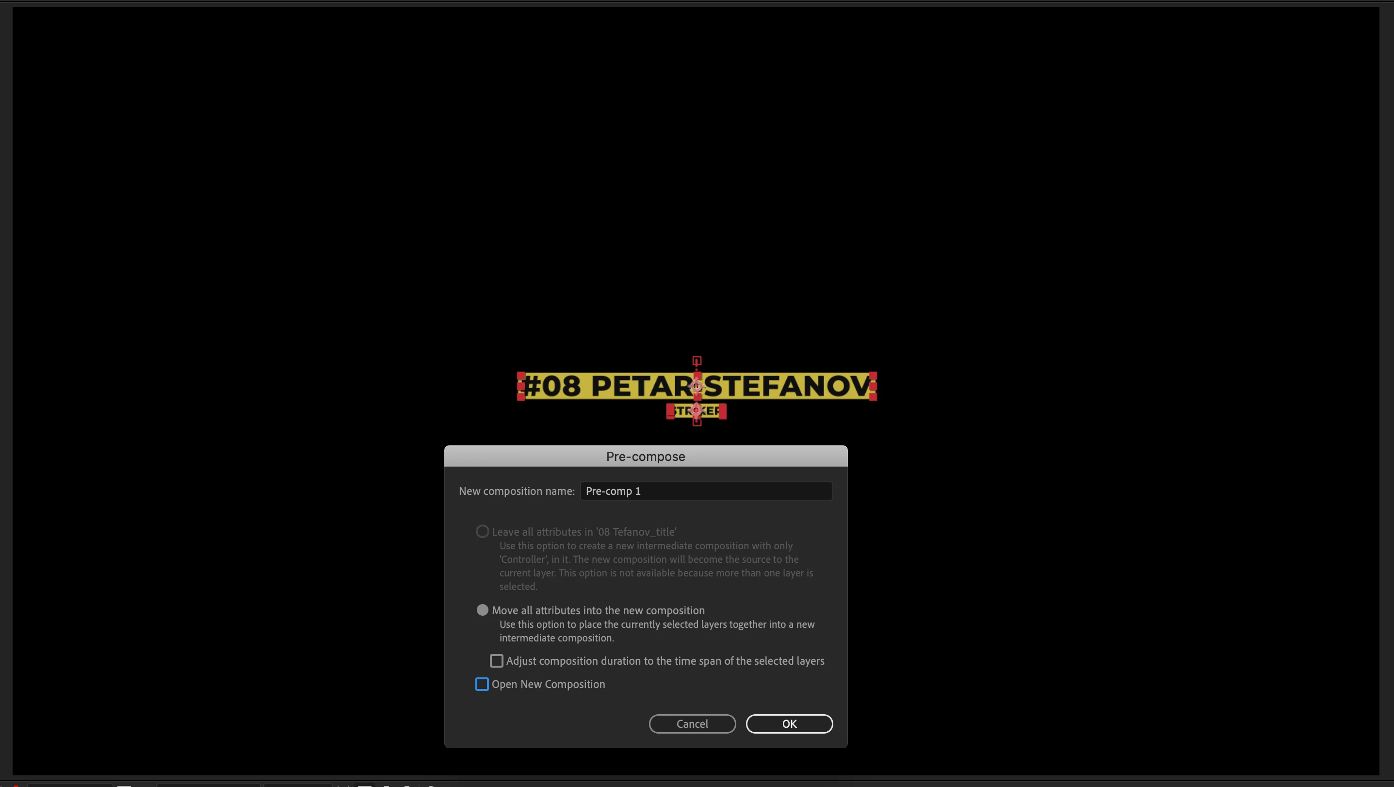 the work flow is to duplicate a text animation, type the new player info. Pre comp the title into the player comp. adjust player comp. Lather rinse and repeat. Im want the precomp the text animation becasue i need to match scale and postion and then use a null object to animate the text with the player via parenting relationship.