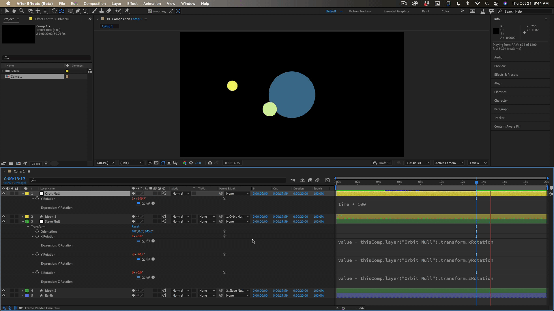 Precomposing a null object and its orbiting layer changes its position.