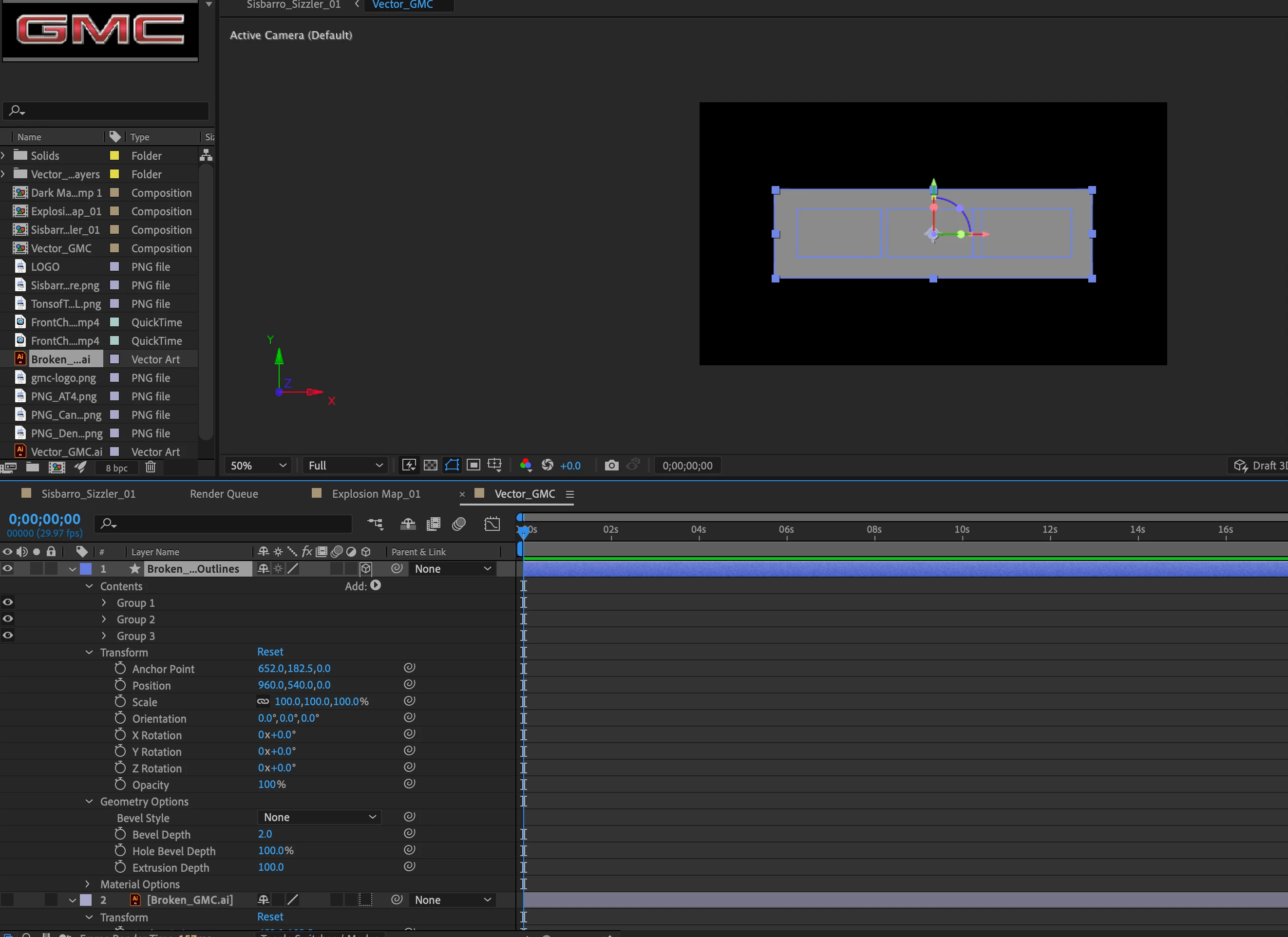 I am indexing a vector logo, because turning it into a shape and extruding it has not been working either. After a successful indexing, I return to the composition, and the logo bounding box shows a solid color around it. Blending modes do not seem to be nullifying the situation. This is frustrating, because the only other work around I can think of is to run it as an alpha in Z-brush, and repaint it. That, however runs risk of not looking exactly like the logo.