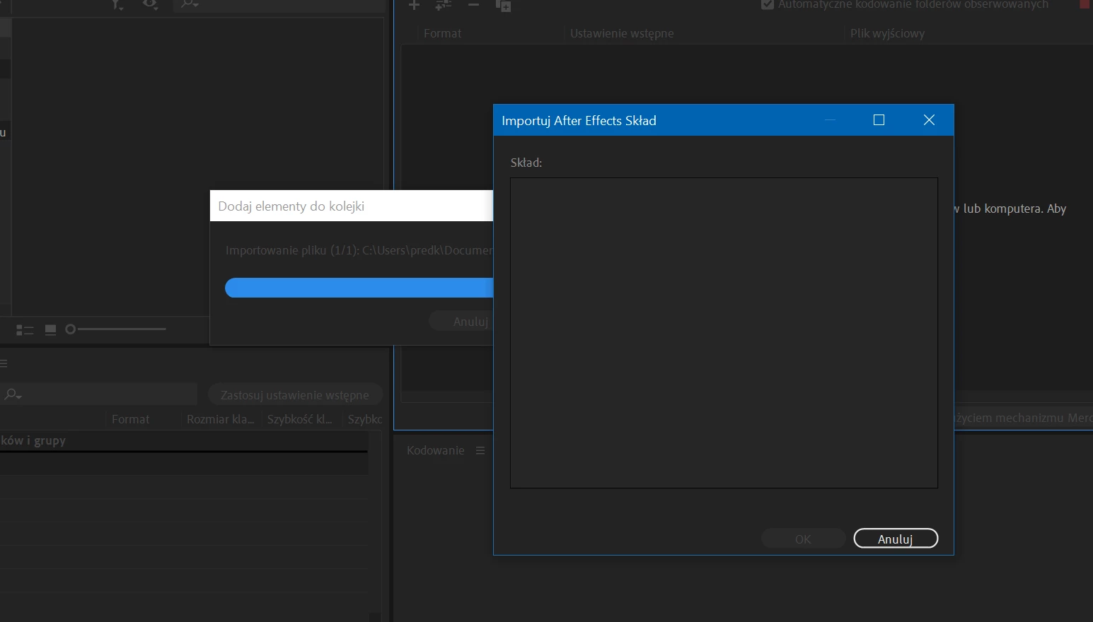 im trying convert the composition to media encoder and nothing happens. I dont know what should I do. Both is 2020 version. Somethimes show writing " uploading a dynamic link has failed"
