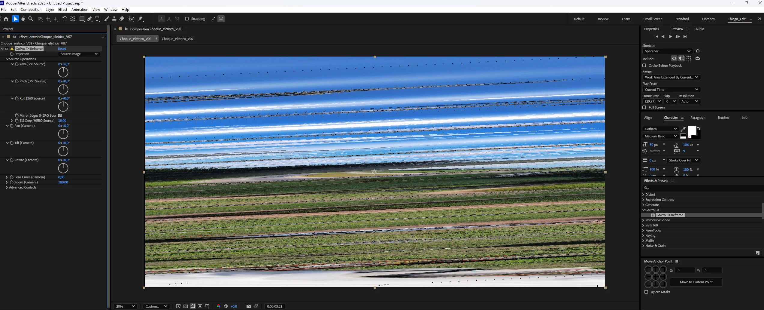 I added the GoPro FX Reframe effect and tried to adjust the parameters (zoom, stabilization, etc.).
