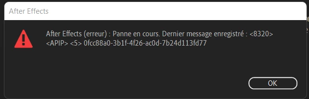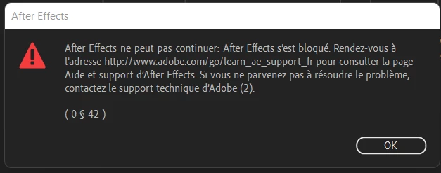 Problème à l'ouverture d'After Effect "Panne en cours."