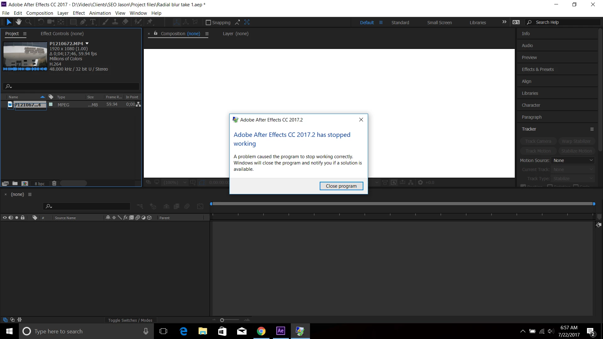 Then nothing happens when I click ok, but the second I open a project it all crashes.