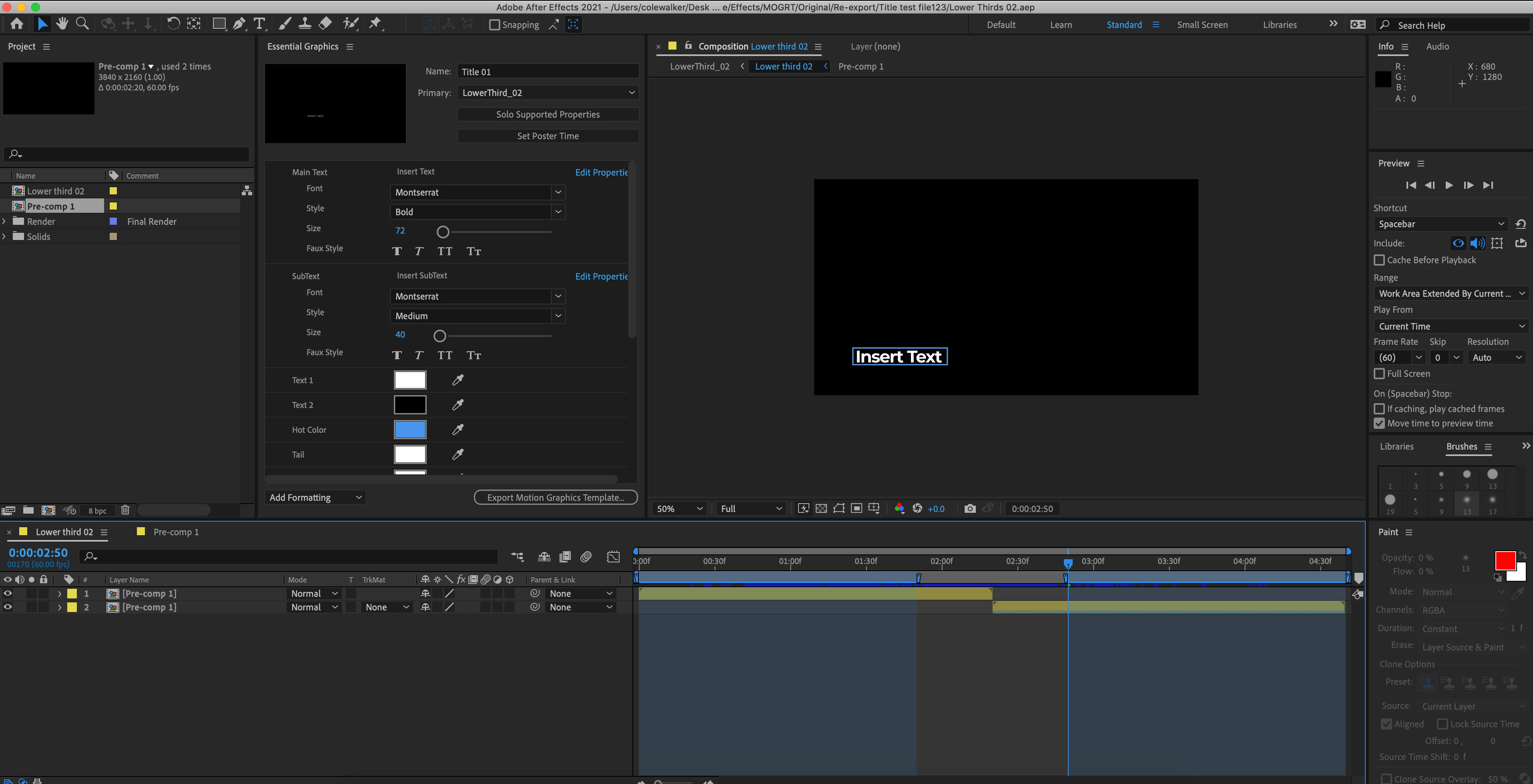 I was able to successfully do this with one MOGRT but since then I can't seem to replicate with the other ones I am creating. I downloaded a MOGRT preset, pre-composed everything, duplicated it, and then time-reversed the new layer. Then I made the Protected Regions at the beginning and the end which you can see on the screenshot. It works great in After Effects, but when I bring it into Premiere it won't let me drag out the duration at all and it acts like there are no protected regions.