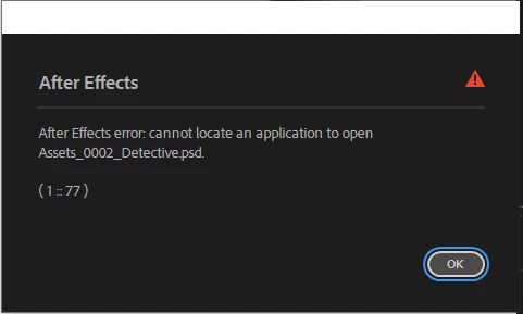 "After Effects error: cannot locate an application to open [file name].psd. (1 :: 77)"