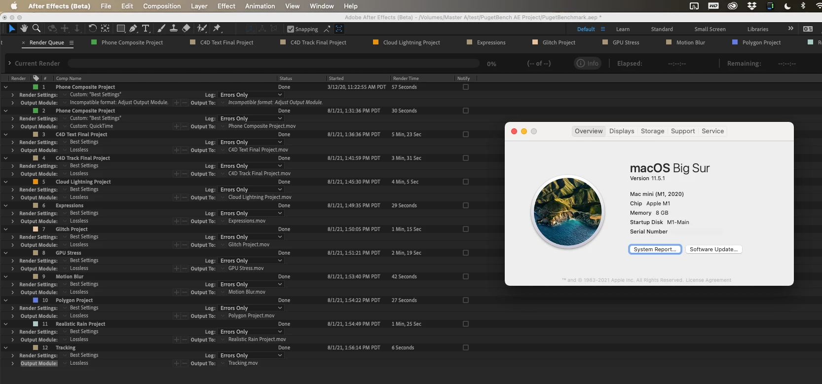 Puget System benchmark stops mid test (After Effects 18.12.1)
