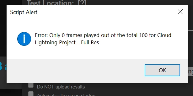Mid test during the Cloud Lightning Project, I get this error message (picture), when I click ok, nothing happens, the test doesn't stop, nor does is cancel itself, or something like that.