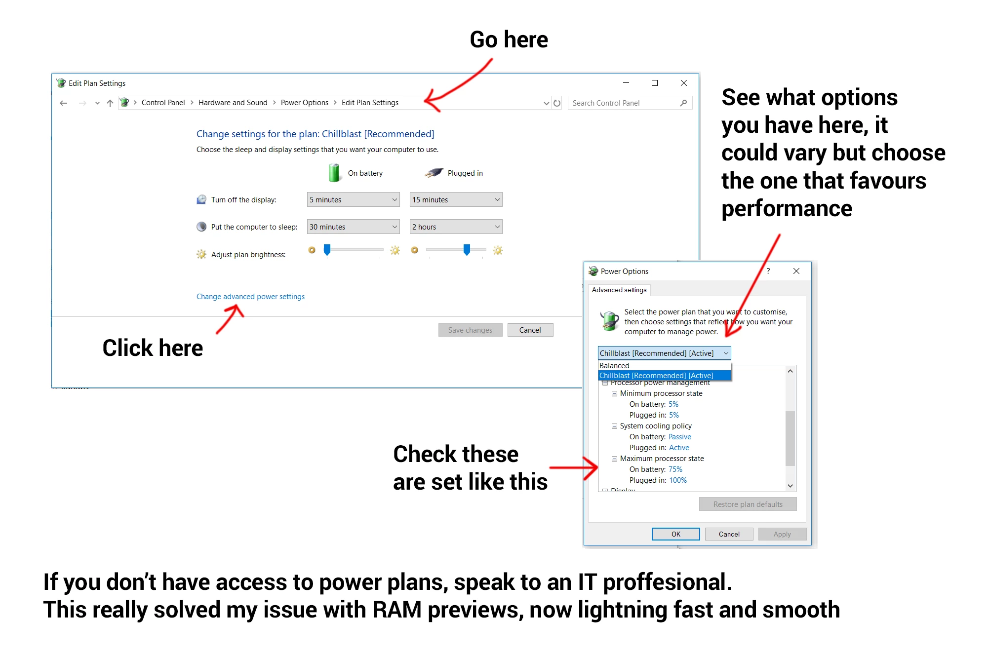 i changed mine from 15 GB to 3 GB and this solved my preview problem!!
