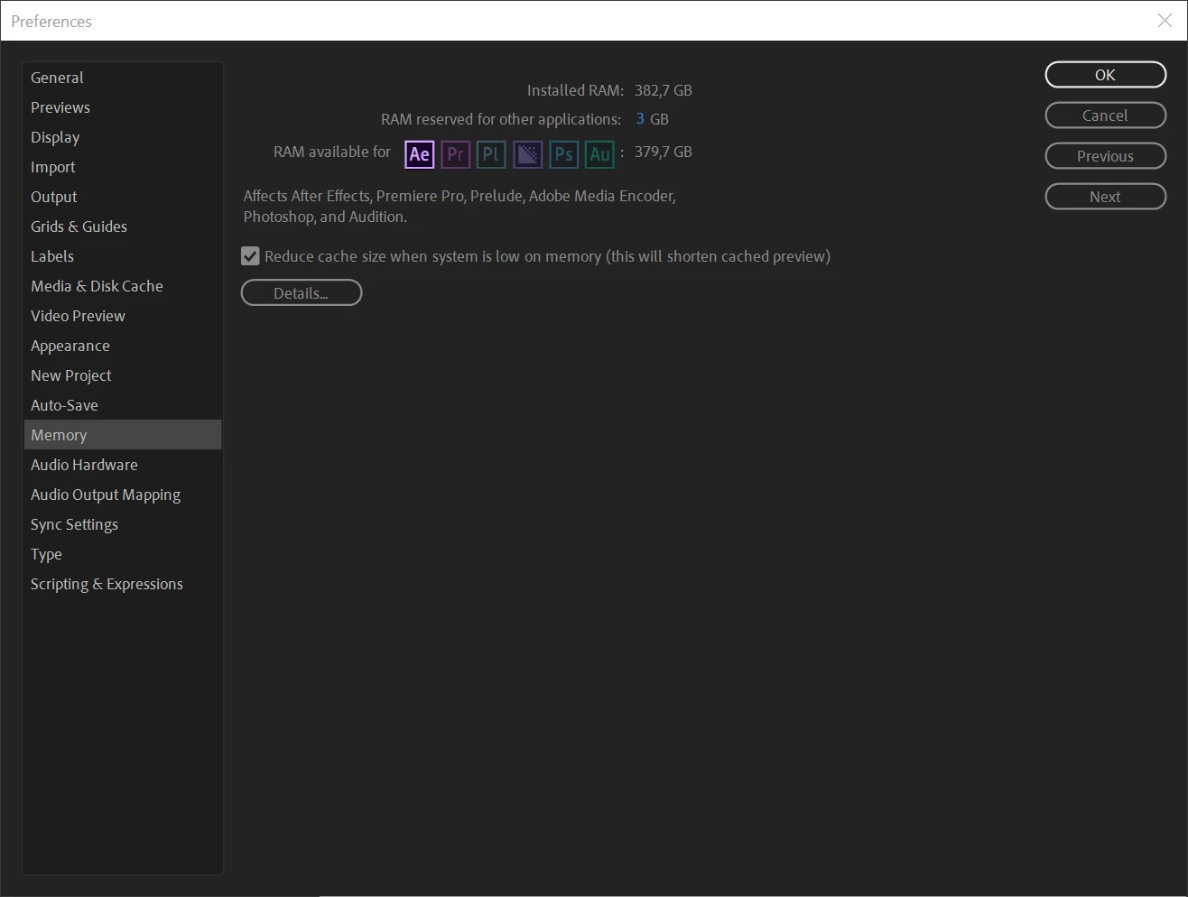 go to edit > preferences > memory > you will see ''RAM reserved for other applications:'' and here reduce the GB