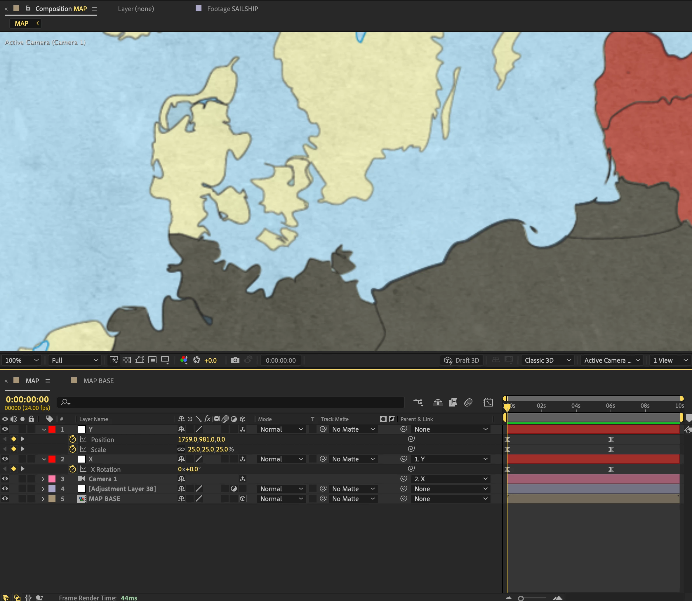 When I rasterize my map, the map seems to flicker (especially in the Norway area of the map) as my 3D camera moves over it. I discovered that the only way to avoid this issue is by turning off the "Continuously Rasterize/Collapse Transformation" button (" * "). But then my map loses resolution and becomes pixelated when I zoom in on it. Please see these two videos showing no flicker with the non-rasterized map and flicker with the rasterized map.