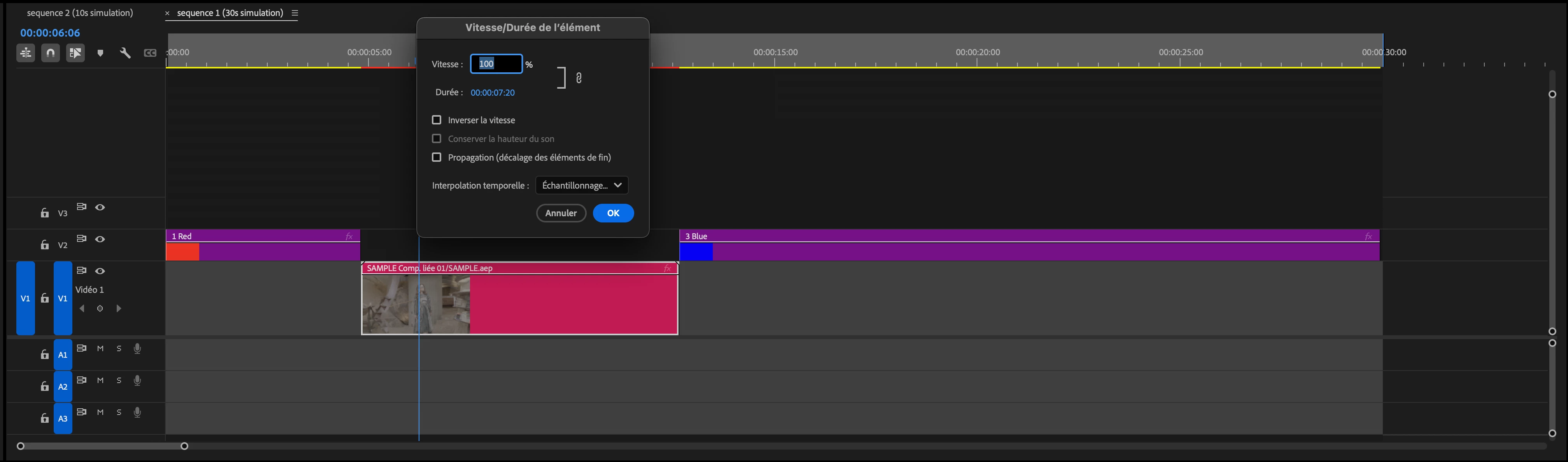 Ne maitrisant pas le remappage temporel sur after effect, je ne sais pas si c'est une mauvaise communication entre Premiere et after effect ou si je suis tout simplement dans le mauvais menu et ne sait pas correctement lire ce que after effect me dit.