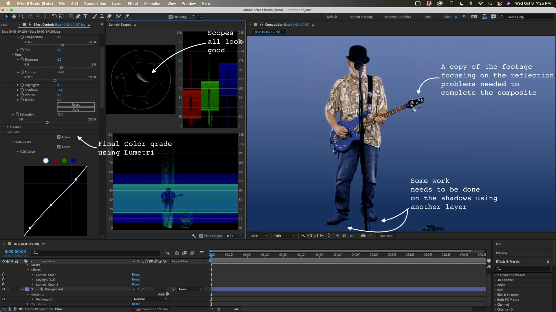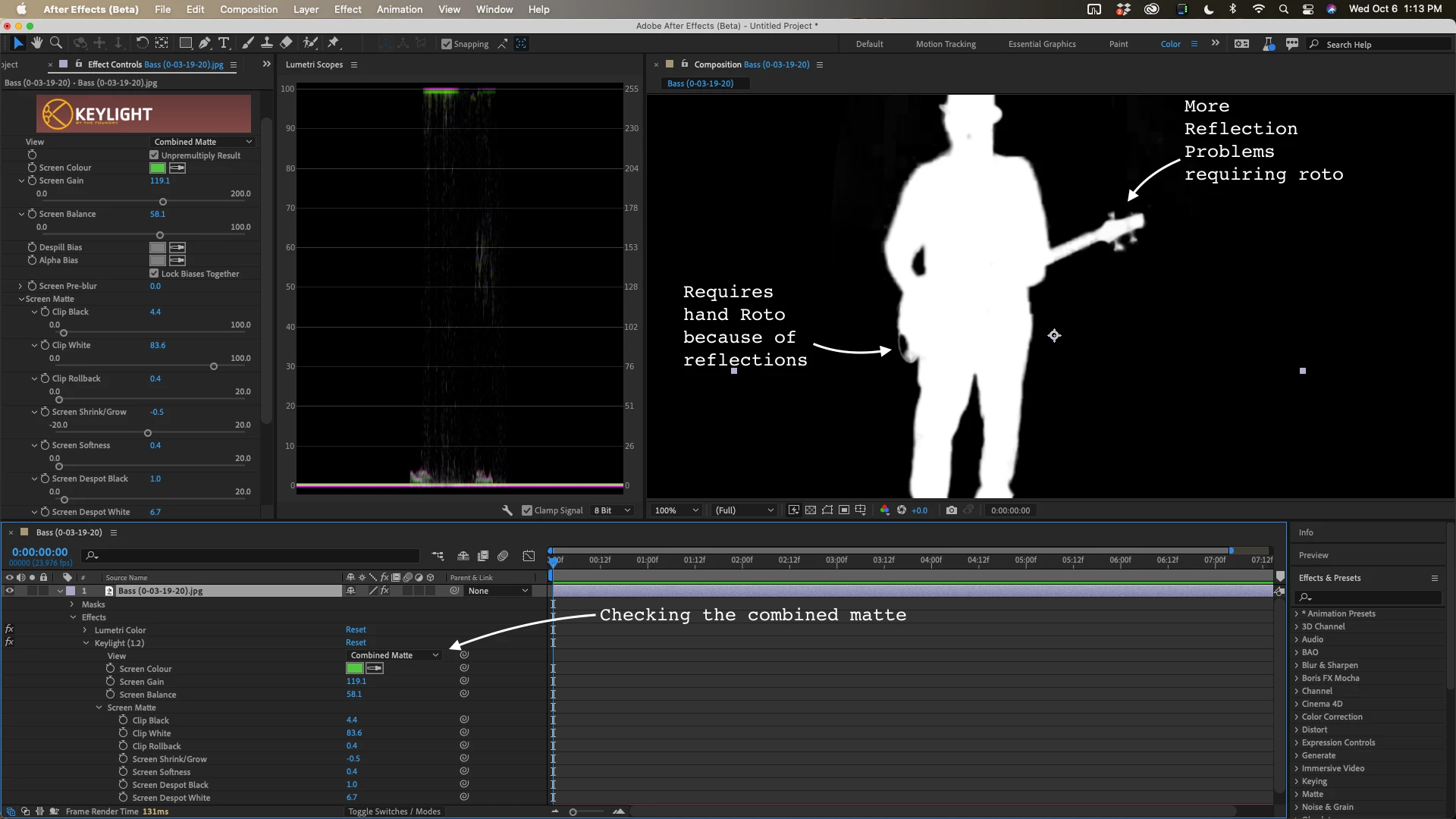 Doing some basic green screen editing of a video clip...see attached... have keyed out green via keylight, set the clip black to 15 and clip white to 50 in the Matte view to get the best minimal settings, applied the "chatter" and "green spill", shrunk image by about 1 or 2 pixels, set the, and fiddled with "screen gain" between 103 and 110...can't remove the thin jagged white edge around the image... see 2nd clip