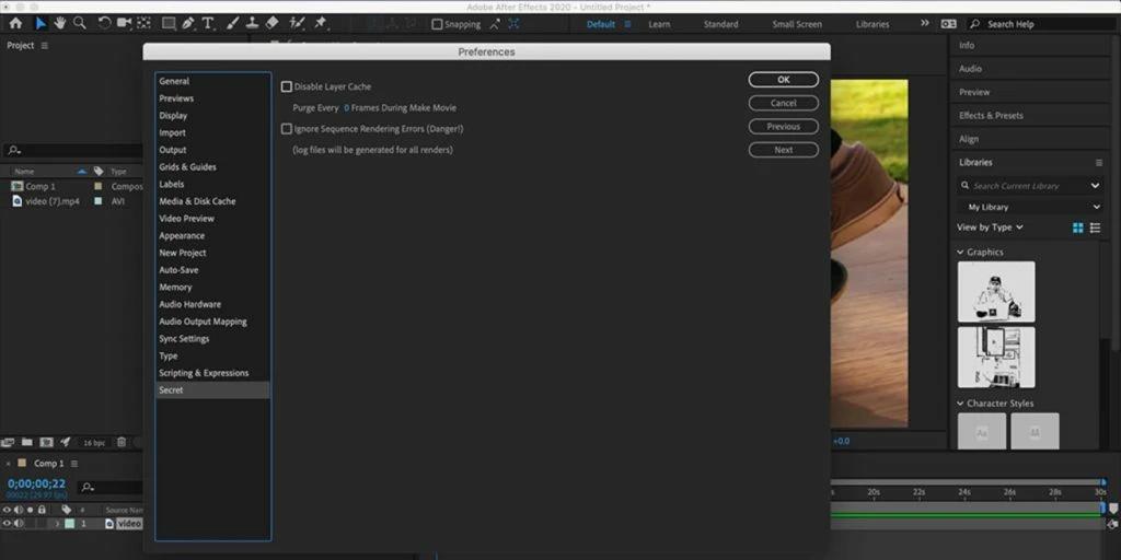 6. Select OK then try to render again using the Render Queue or Media Encoder.