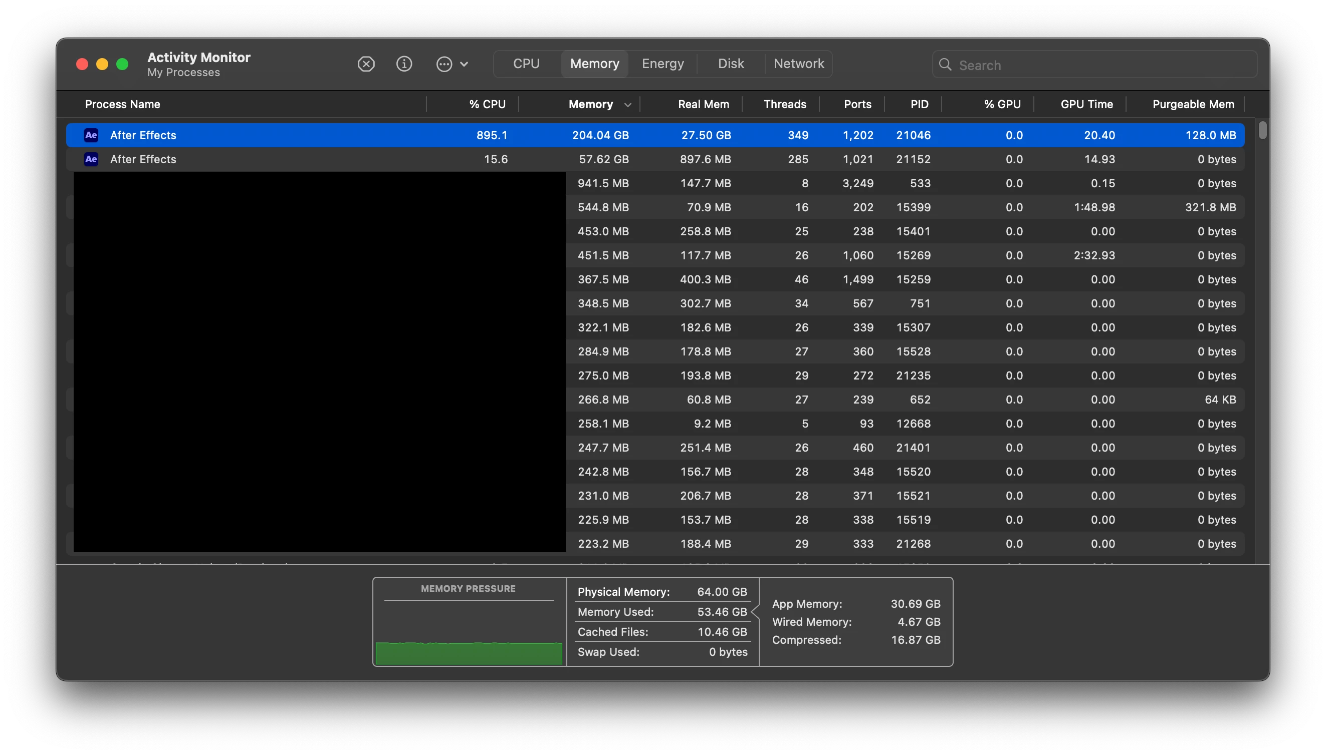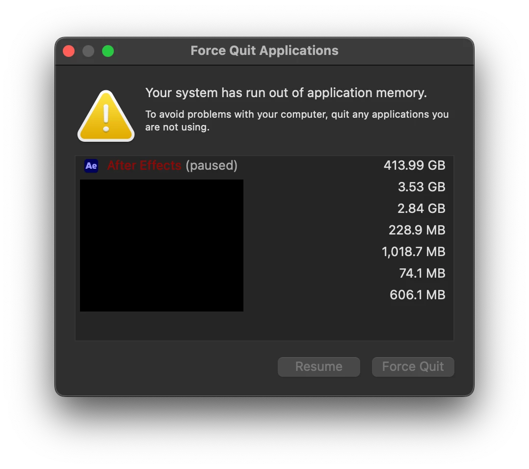Am I missing something obvious? I’m no expert on how After Effects uses Memory, or the Memory usage of my Macbook in general. Do I simply have to settle for reducing size of my project and the intensity of the effects used?
