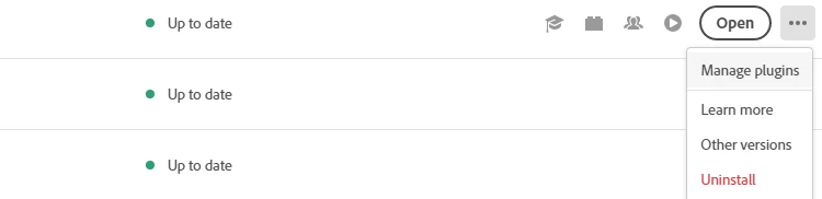 Hi Jqke, when I click on those dots, I am not given the option to install previous versions. There is only "uninstall" and "learn more." "Learn more." I can get to a page from "learn more" that has old version of other Adobe software, such as acrobat, but older versions of After Effects are not available there either.