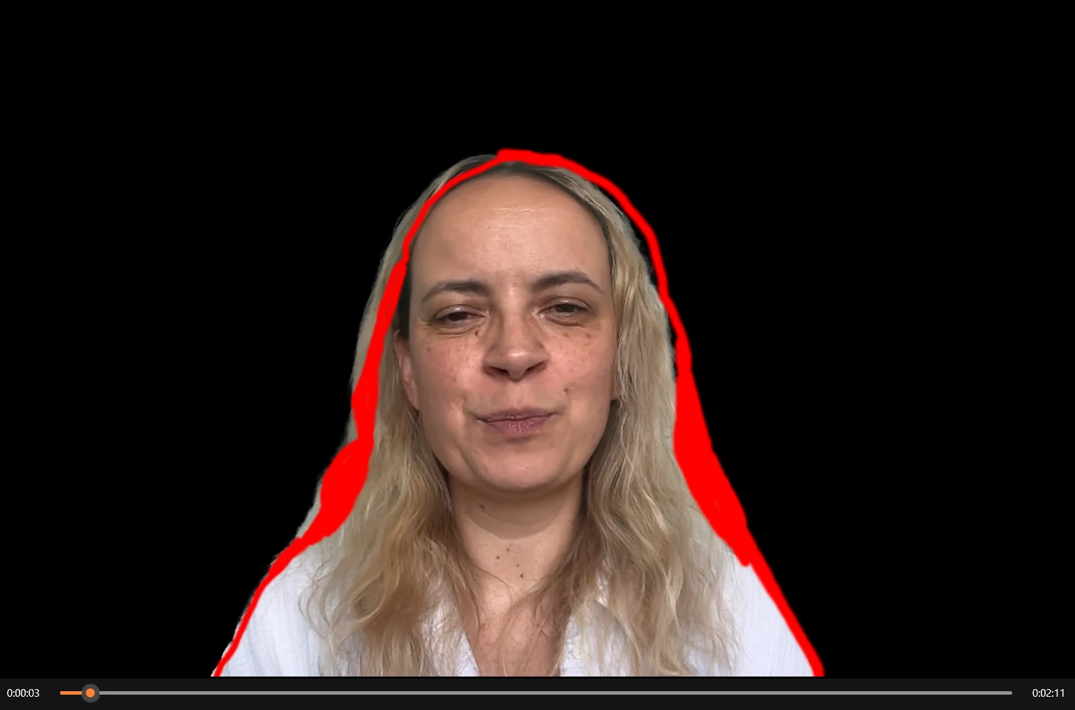 I used the Roto Brush Tool to remove the background of a video. It worked. I also used the Refine Edge Tool to refine around the hair lines. Then I got this red contour when propagated and rendered. What could be the possible cause? How to correct this? Thanks for any help!