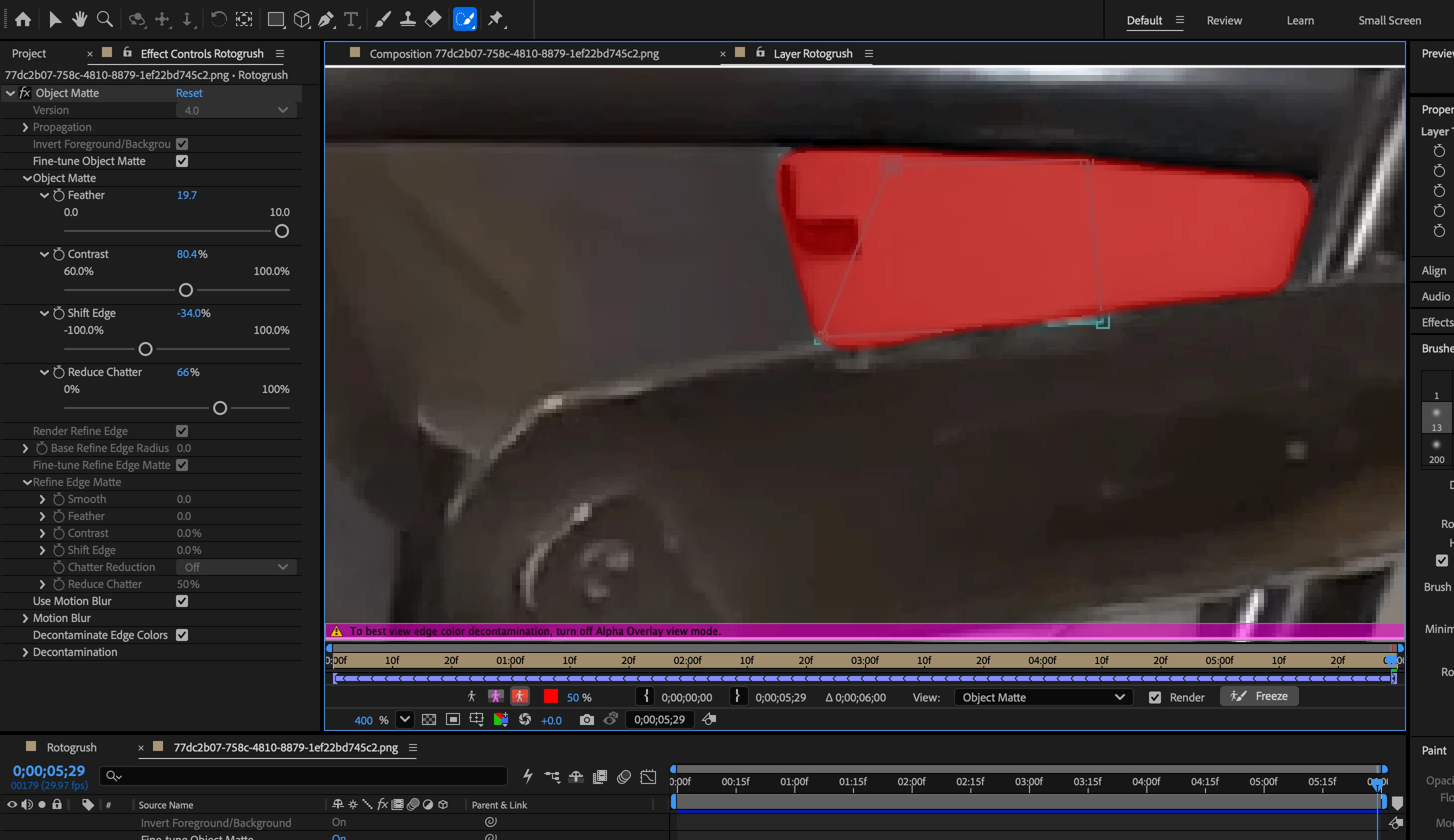 I am trying to do some very tedious roto work removing tracking markers on greenscreen. Even though my setting for Mask Feather is set to zero, there is a few pixel feathering that exists, making it hard to really do an accurate roto. Any ideas what I am missing here?