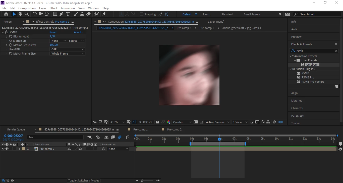 Hello. I've been struggling alot these days because i cannot figure out how to solve this rsmb bug 😞 everytime i try to add rsmb to my composition it looks weird in few frames...even if i change the settings. does anyone know how to solve this ? i search on yt but i cannot find any solution and i would love to solve this seriously. Thank you in advance