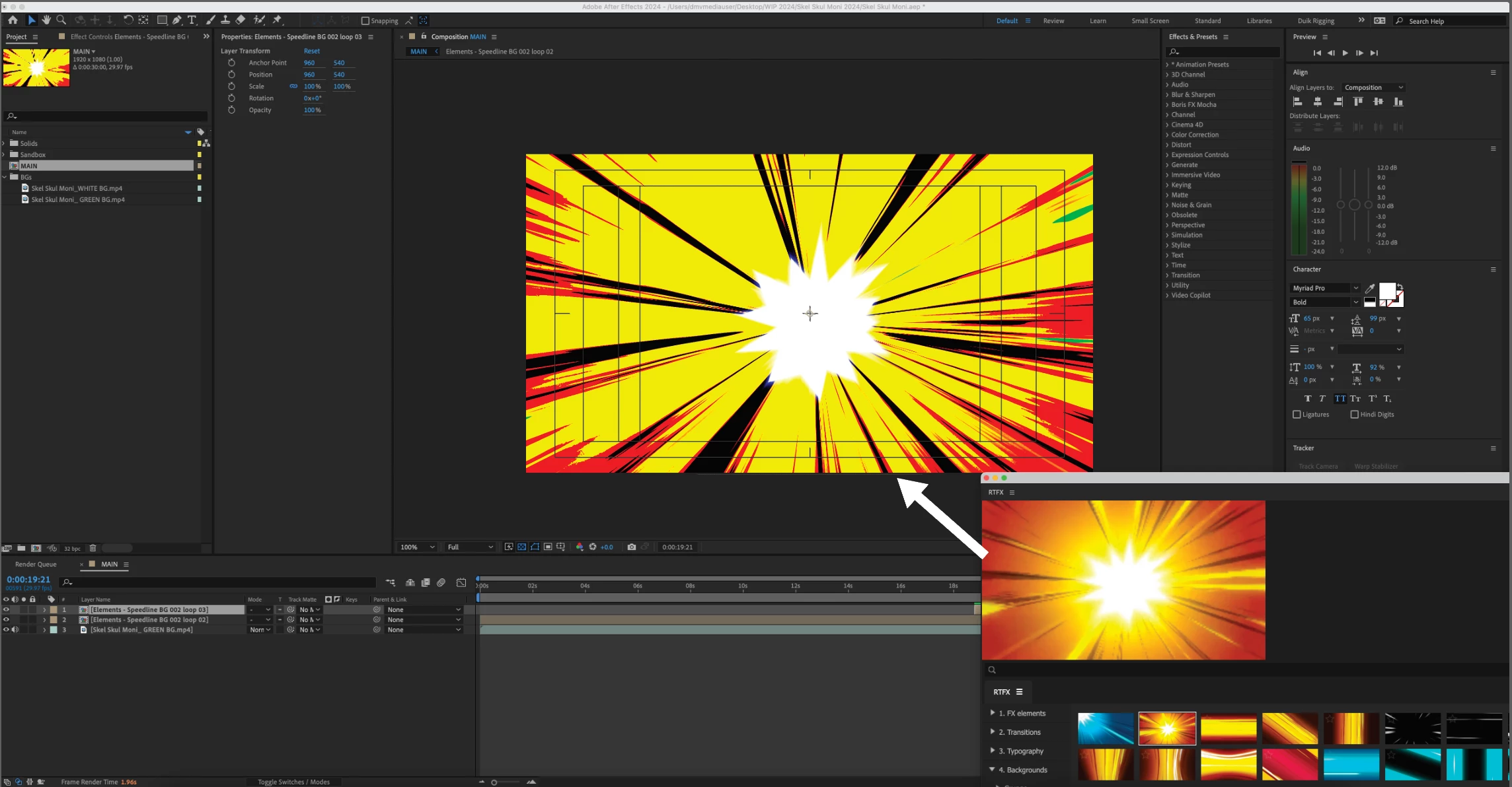Trying to use a RTFX speedline background and when putting it in a comp, something happens to the colors (attached screenshot). I am not sure what happenend and if its an After Effects issue or RTFX itself. Tried increasing the GPU, purging, restarting after effects etc.... and still nothing. Need help with this please if anyone knows the solution.