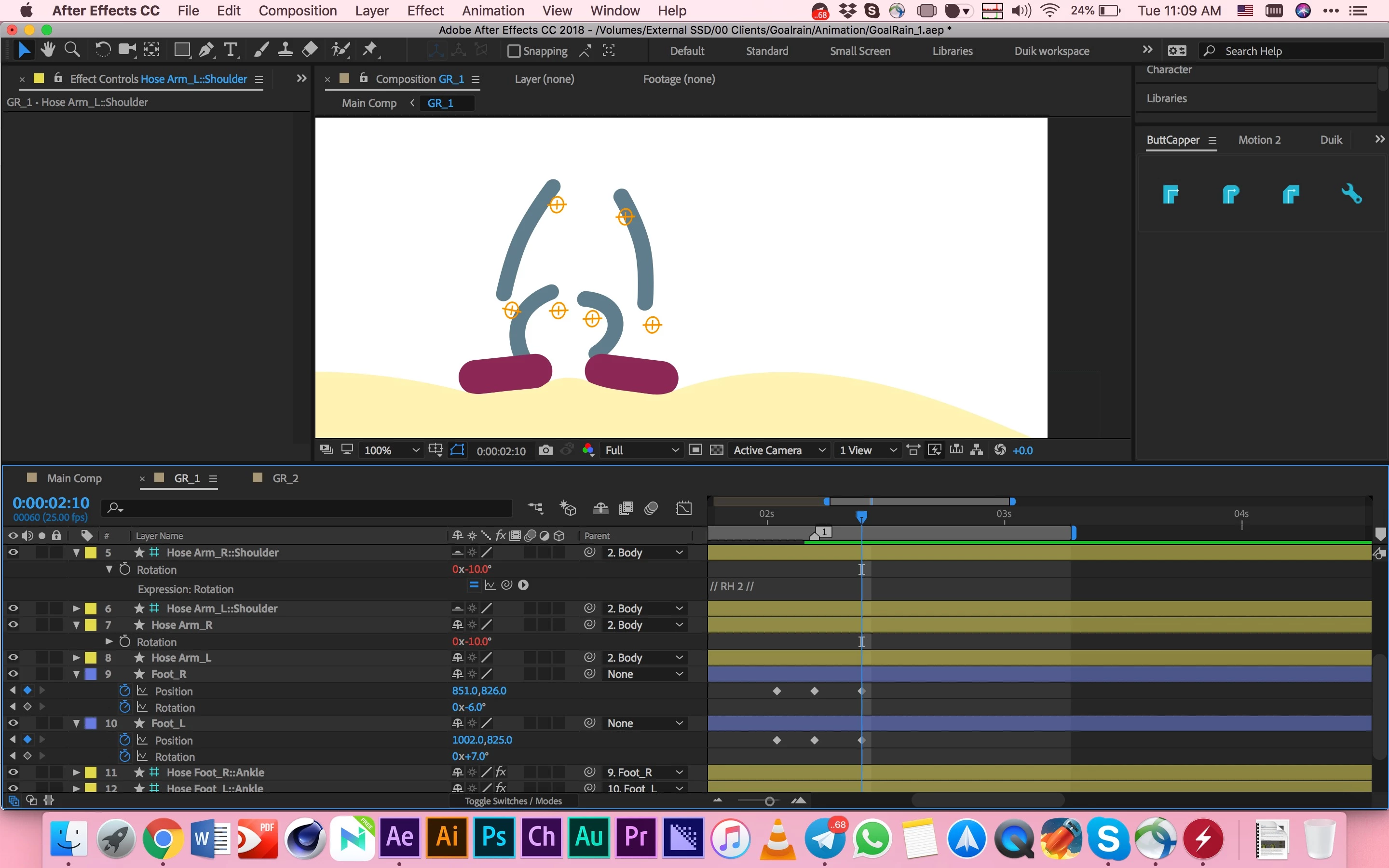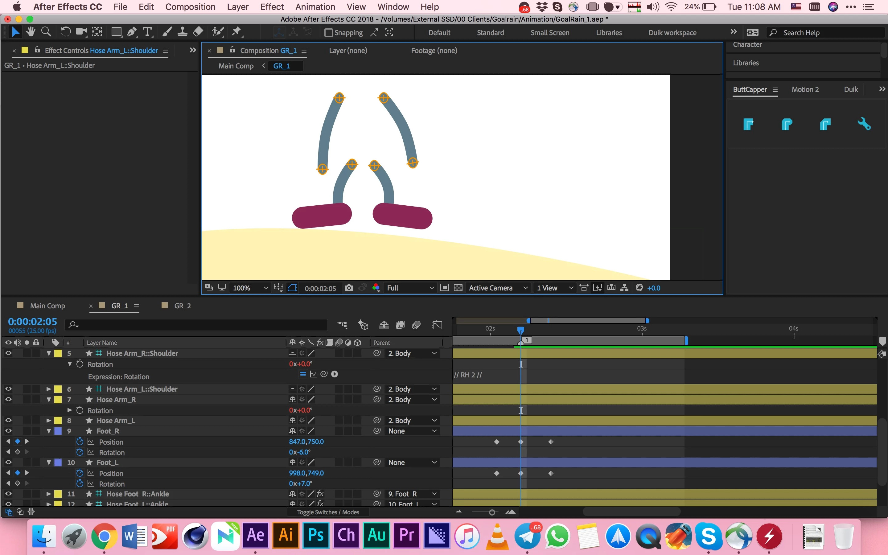 RubberHose2 anchor points get detached from the arm when rotating the body