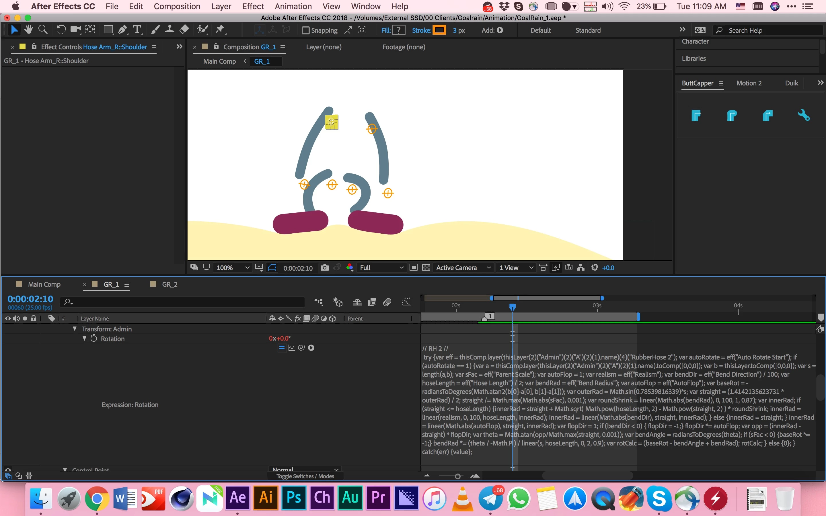 Screenshot 4: Expressions which RubberHose2 used for rotation property