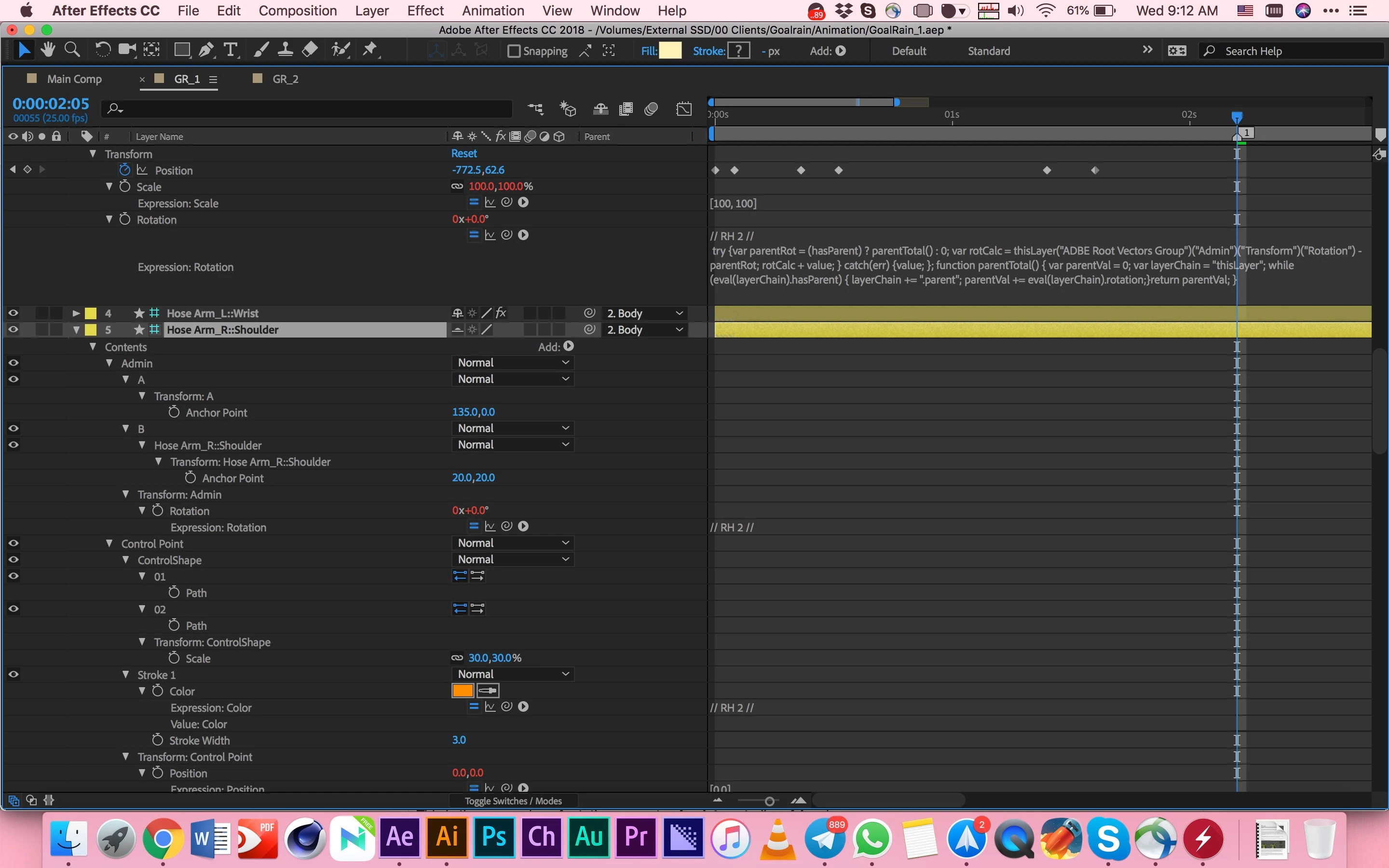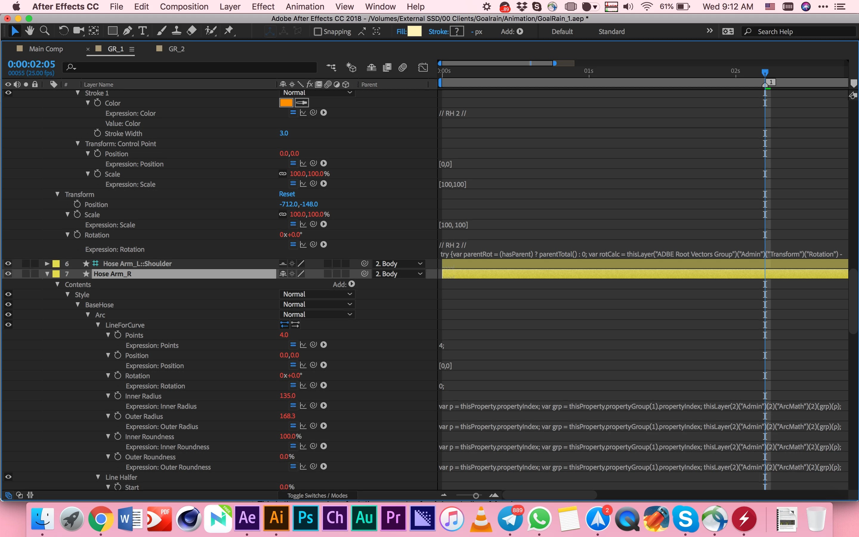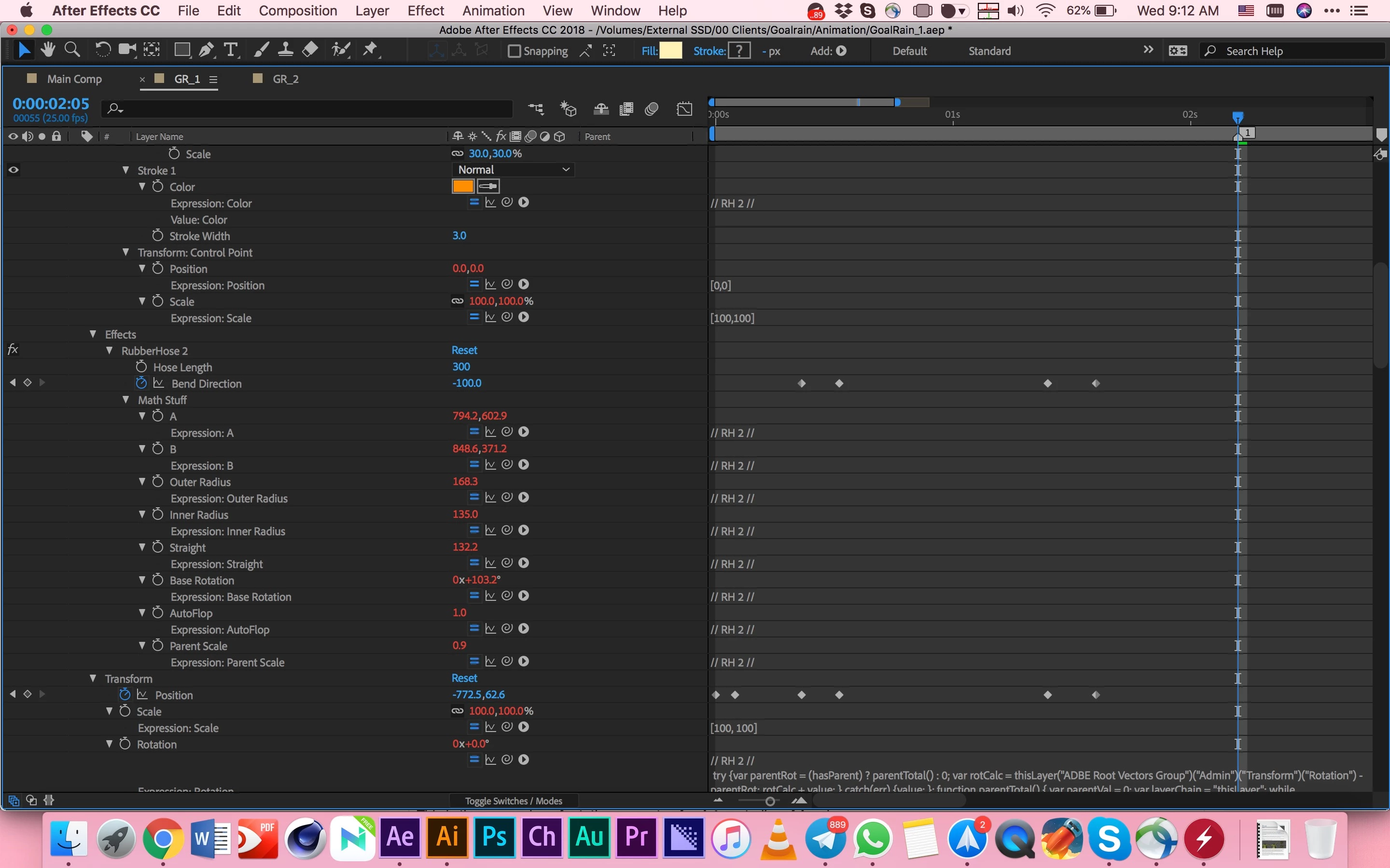 I also added the screenshot of expressions which RubberHose2 have used. I haven't added any expression or edited them on my own.