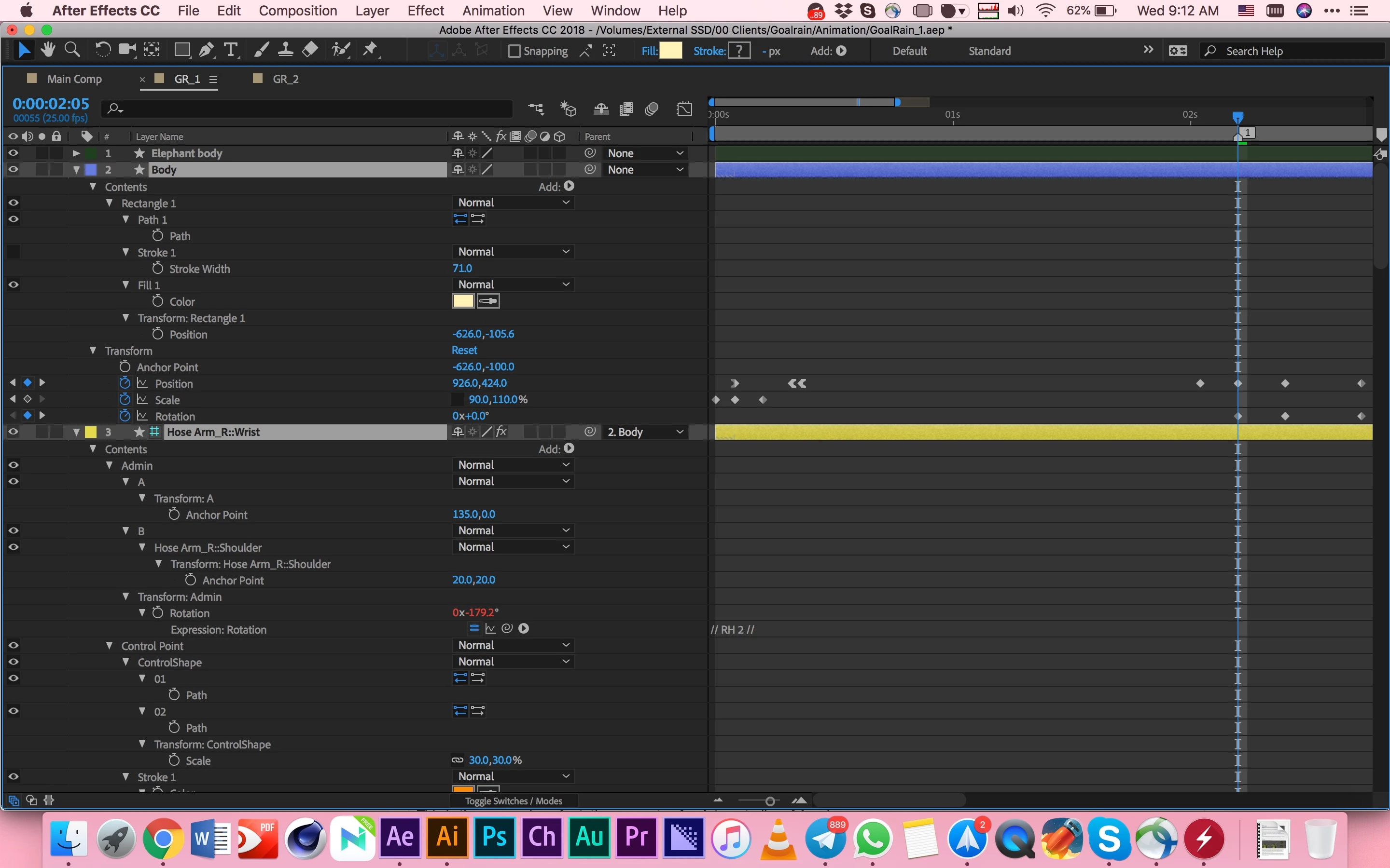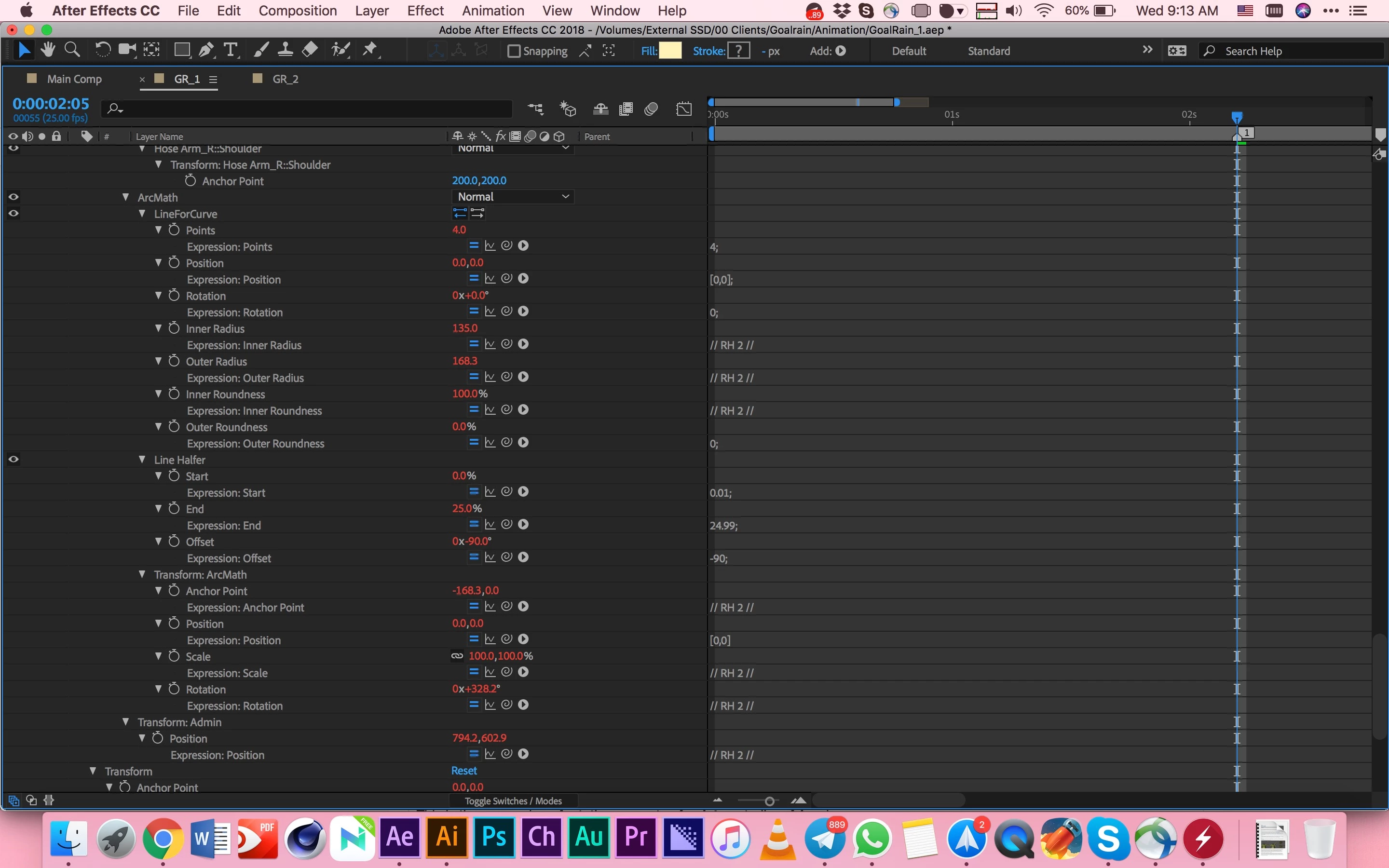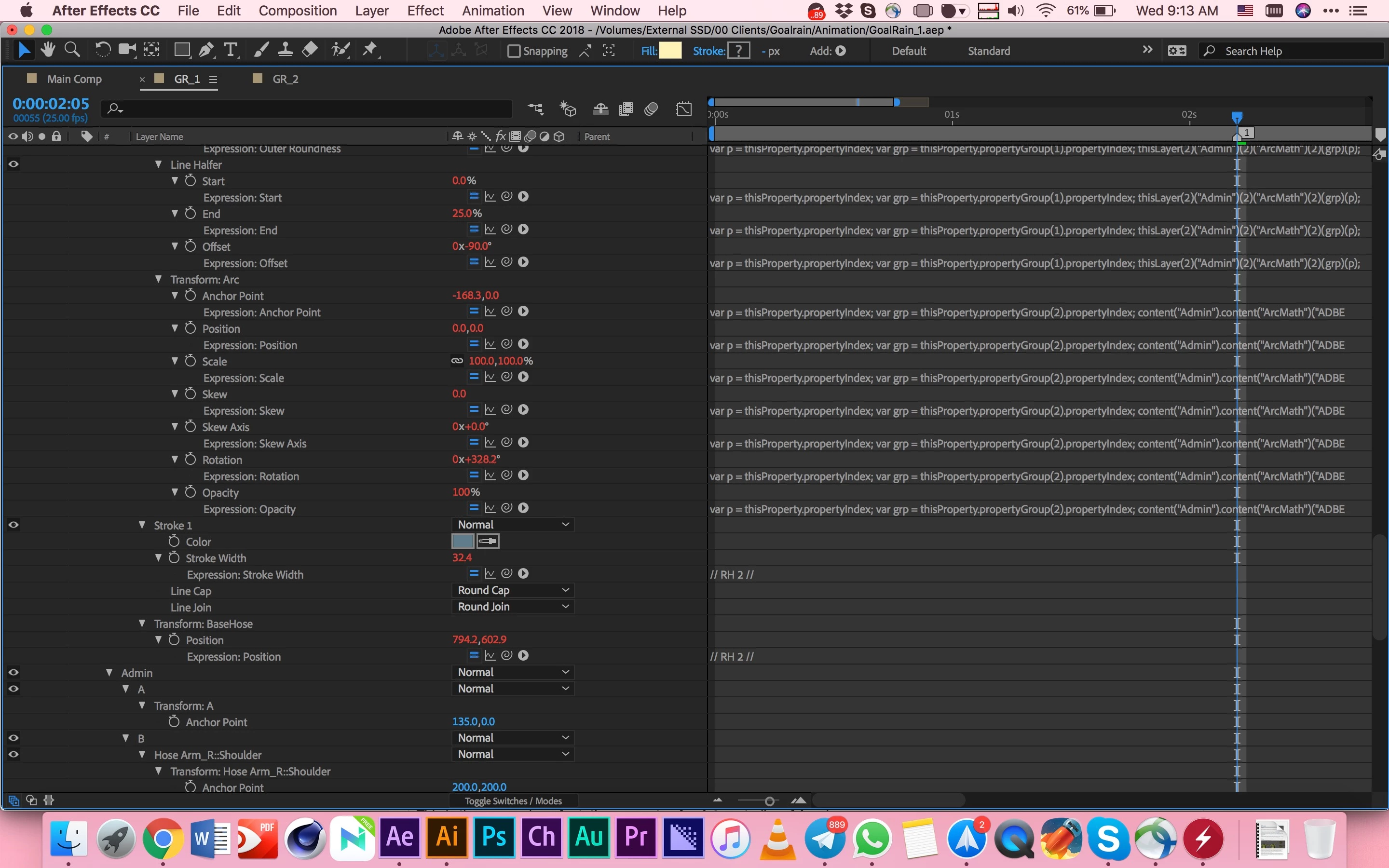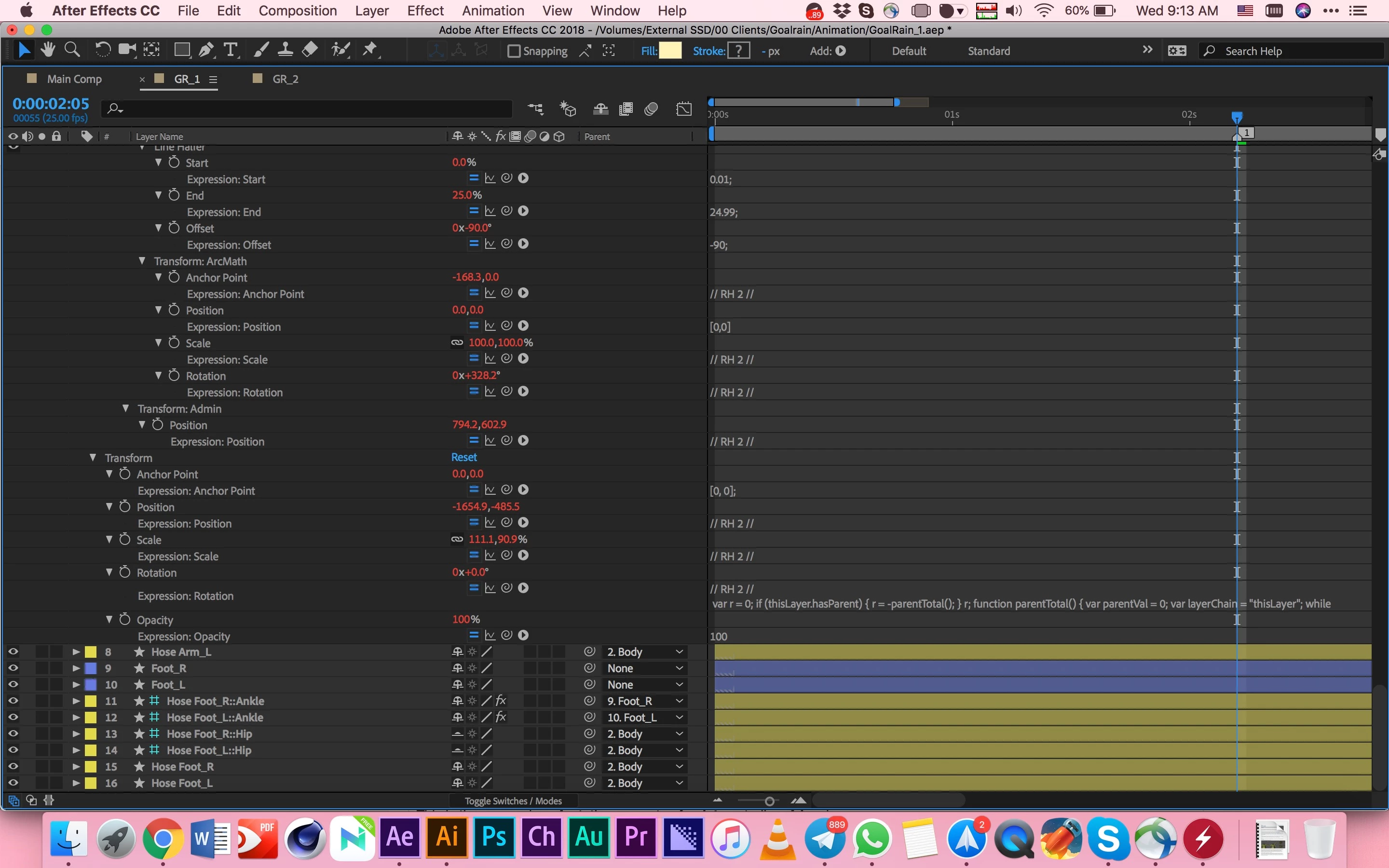 I also added the screenshot of expressions which RubberHose2 have used. I haven't added any expression or edited them on my own.