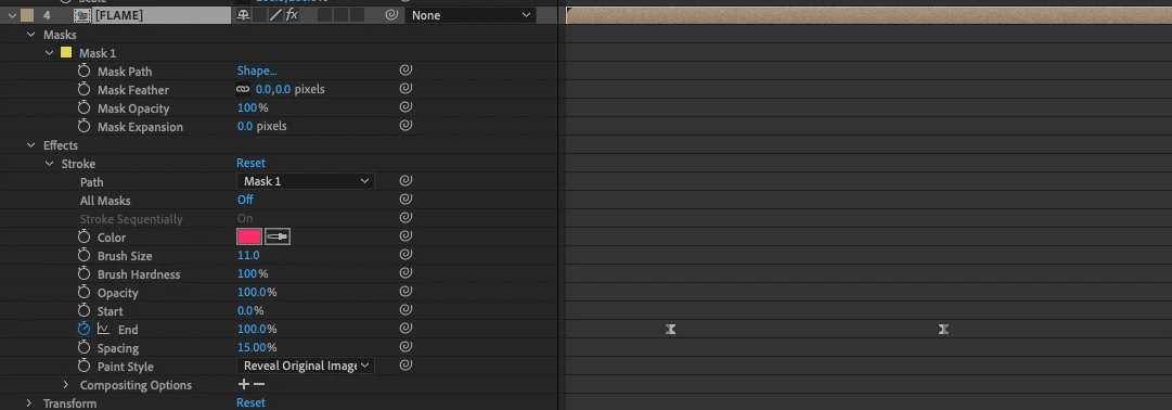 This comp sits within my main comp, but when I scale up the logo animation comp, the brush size doesn't scale. Meaning the 'Reveal original image' looks really thin.