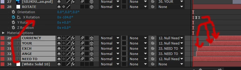 I want to link the text layers to ROTATE null object but I want the keyframes to start at the beginning of each of text layer. This way, I won't need keyframes for each text layer and I can adjust the timing easier later. I know the script lines to link them to a null object but I can't figure out the line to tell the keyframes to start at the beginning of the layer instead the null object in the timeline.