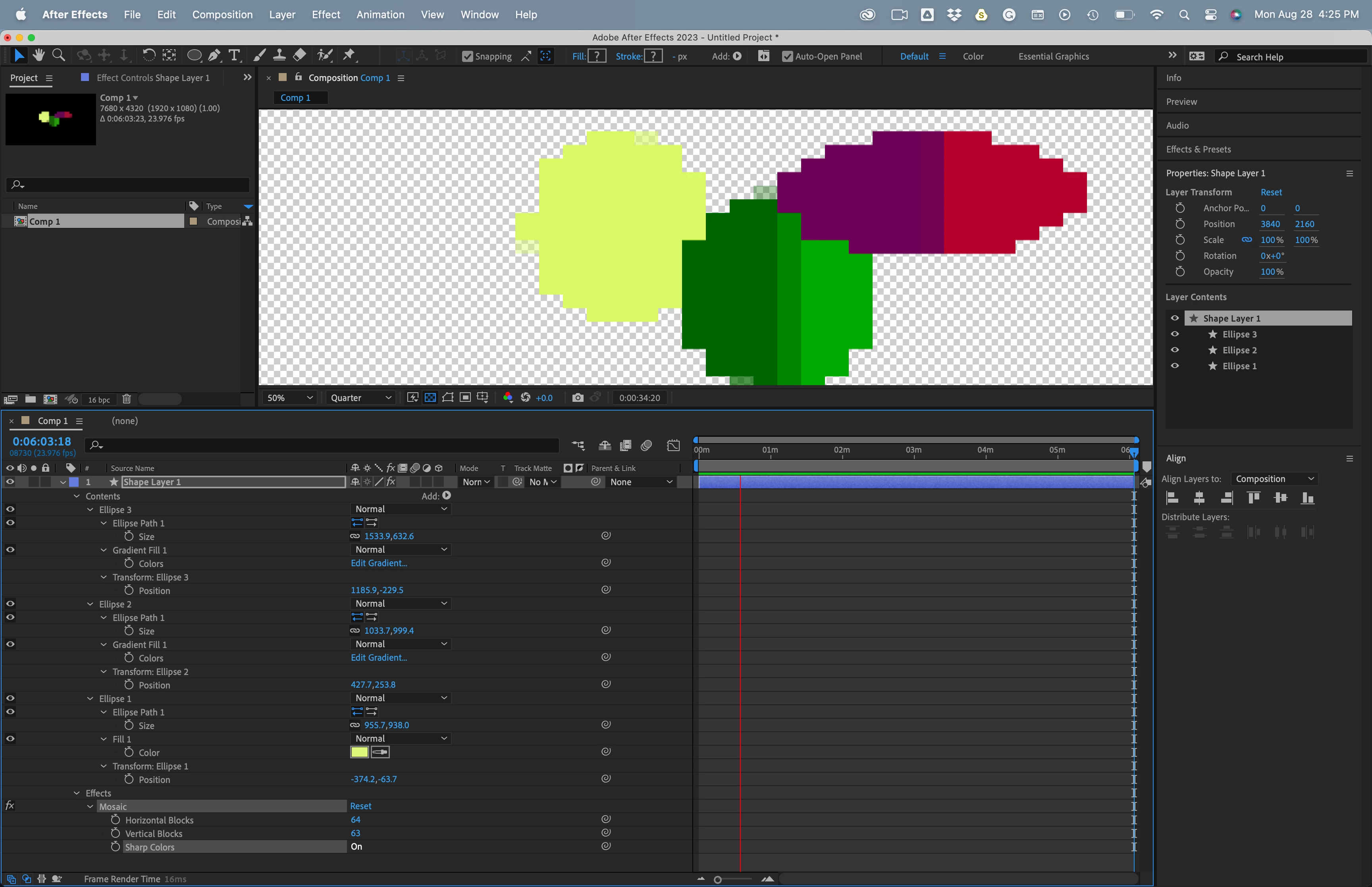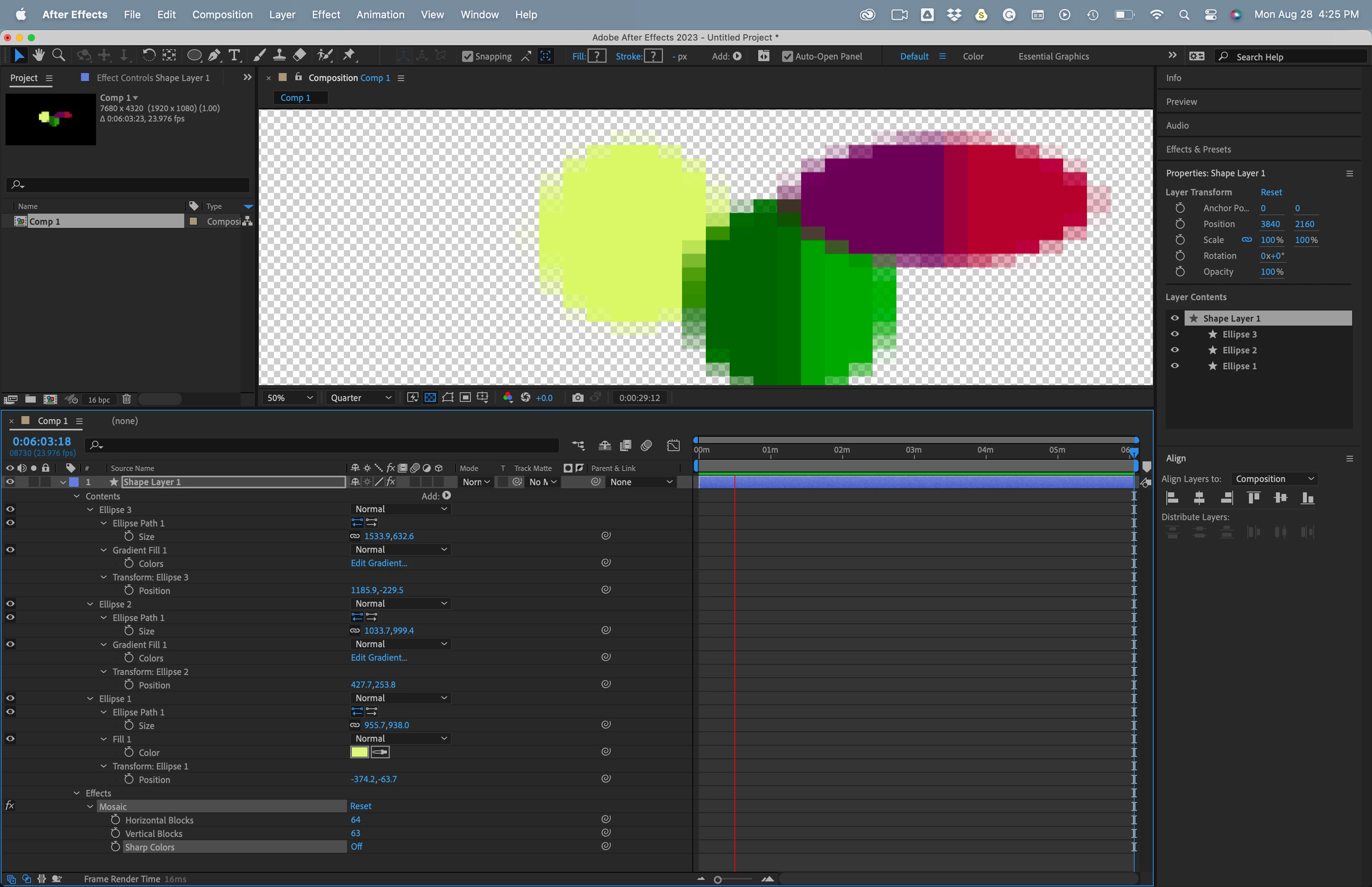 Hi there. I'm adding a simple mosaic effect over some vector shapes - and it's creating these annoying semi transparent pixels throughout - is there a way to elimante this happening?